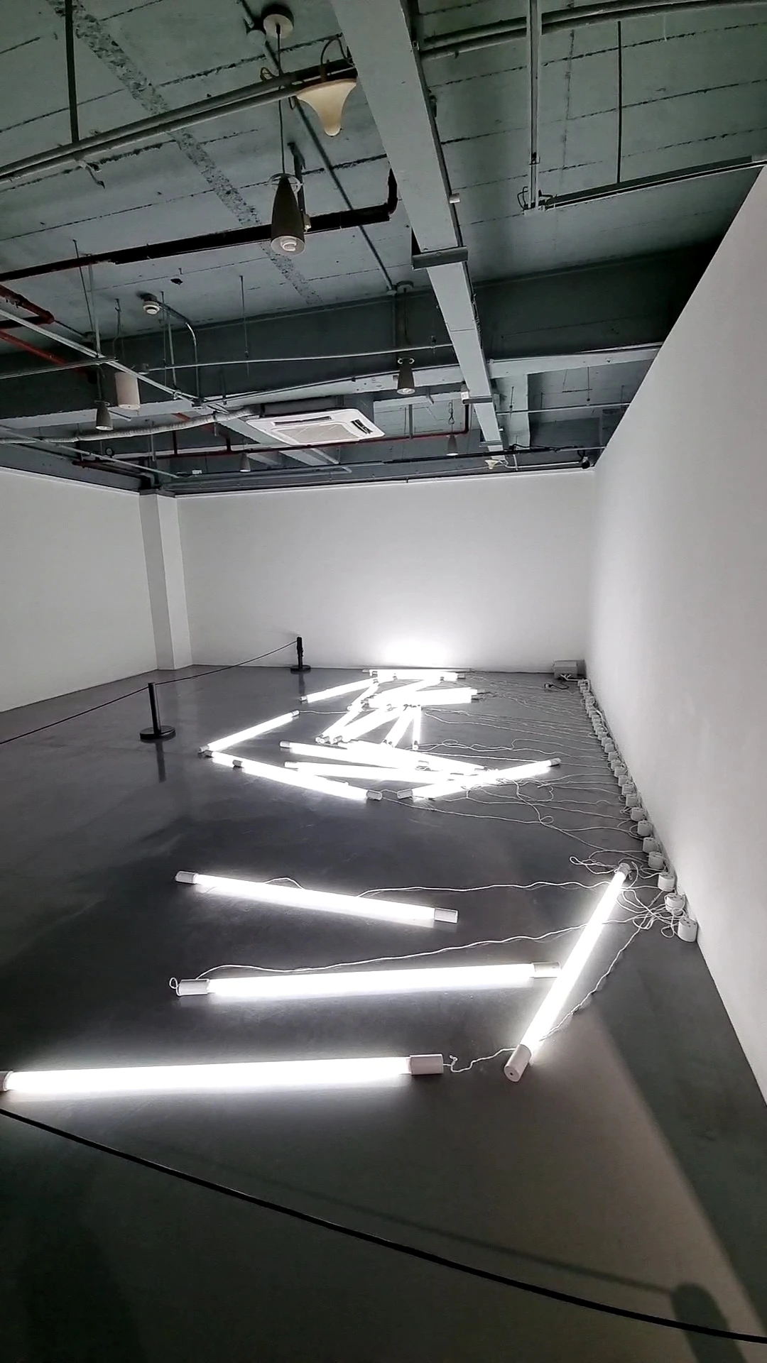 왕위양(王郁洋)의 <관계(关系)>라는 작품은 형광등 20여 개를 전선으로 서로 연결하여 점멸토록 바닥에 배치한 작품이다. 3층 전시실 하나 작은 공간 전체를 다 차지하고 거기다가 윙윙 소음까지 발산하고 있어 이 작가는 이 작품을 통해서 어떤 '관계'를 표현하려 했을까 하는 의아한 마음이 들었다.