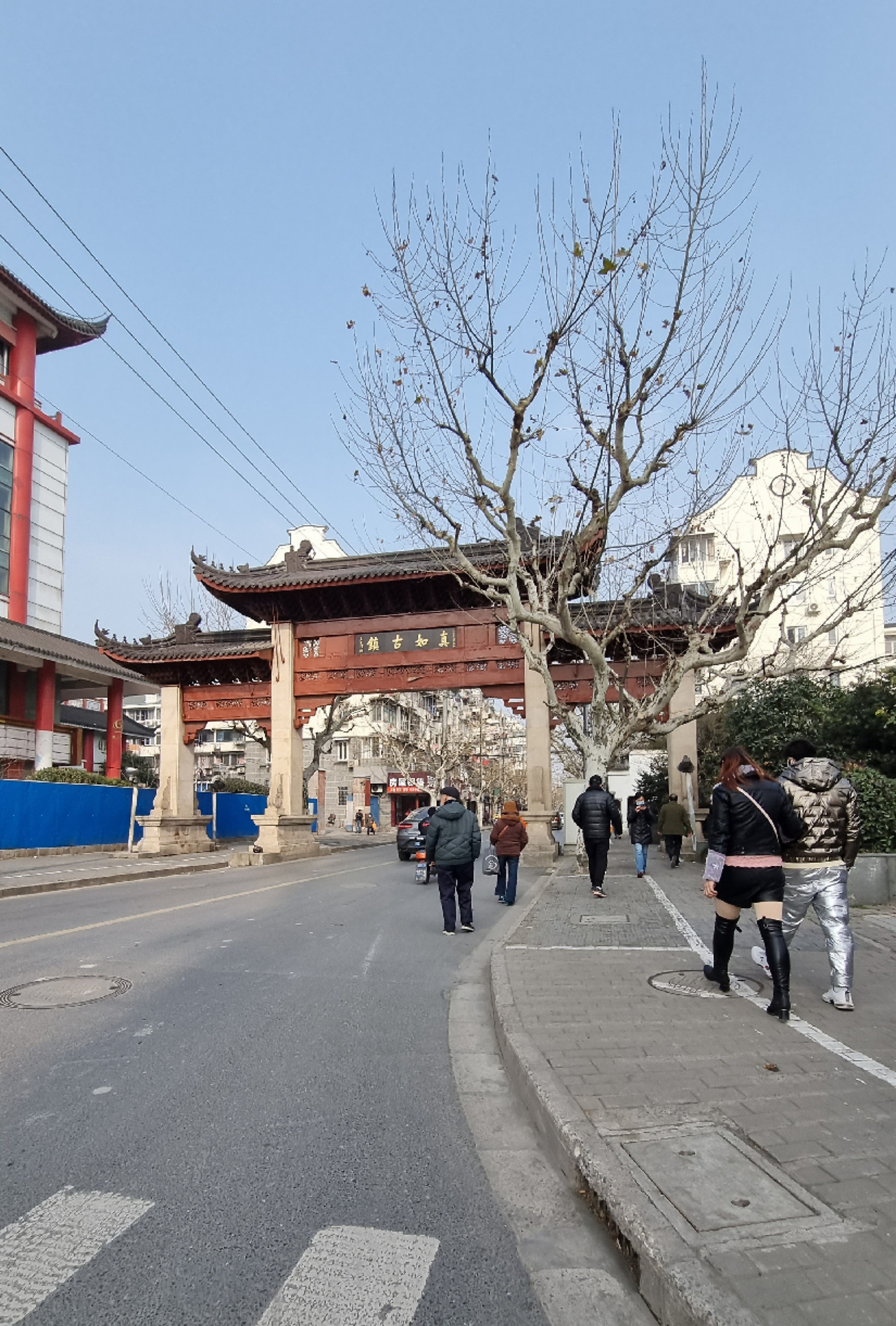 지하철 공사가 한창인 우닝로(武宁路) 사거리 건널목을 건너서 쩐루구쩐 패루로 들어섰다. 2차선 차도 좌우로 늘어선 아파트 사이에 장랑처럼 기와지붕을 덮은 보도가 길게 뻗어 있다. 말이 구쩐이지 우리나라 여느 도시의 전통시장 골목이나 다름없어 보인다.