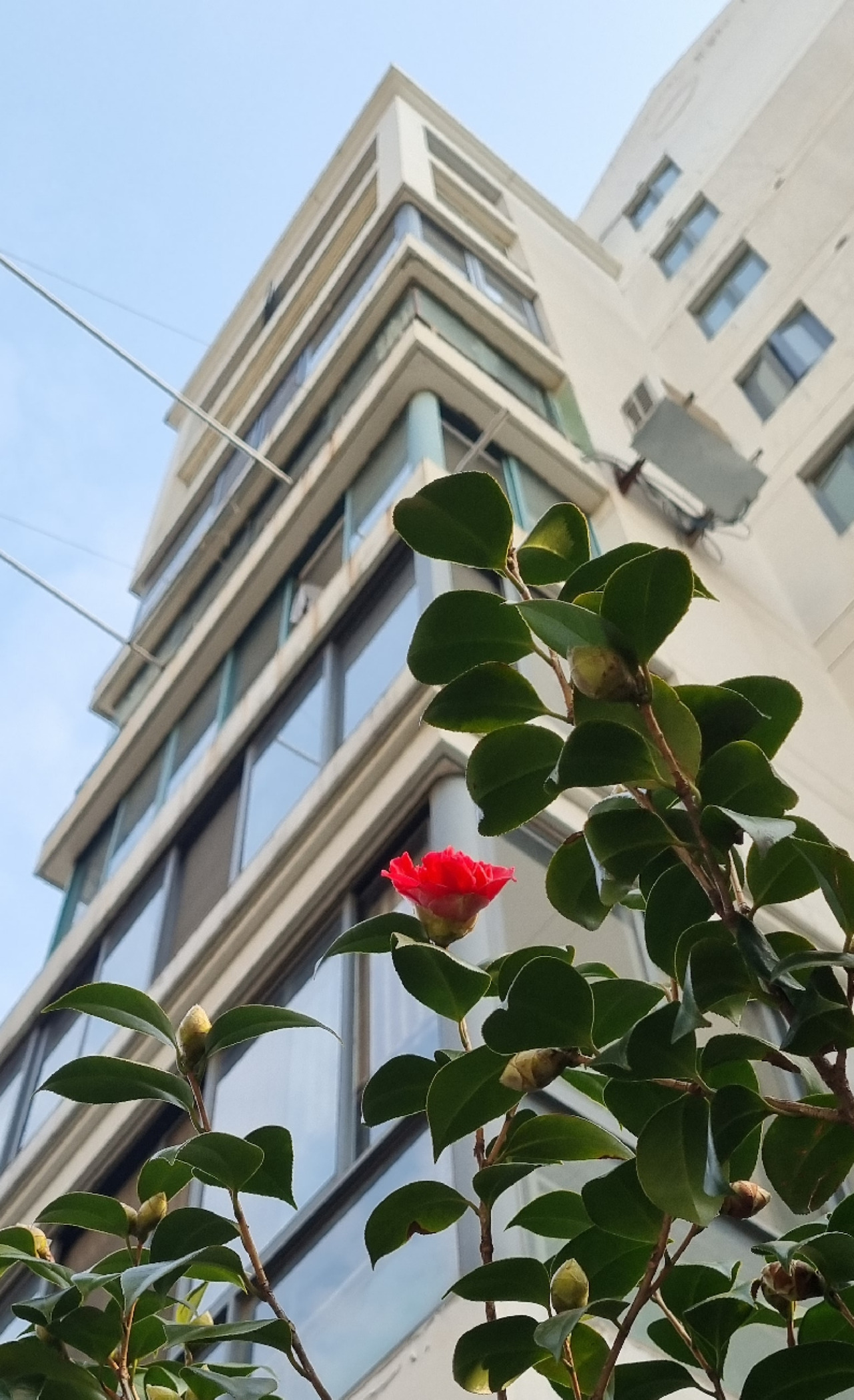 메이링 북로(梅岭北路) 역에서 내려 메이촨루(梅川路)를 따라 시용강(西虬江) 위 작은 다리를 건너 강을 따라 구쩐으로 향했다. 메이촨루에 접한 아파트 단지 입구의 키 큰 동백이 짙녹색 잎사귀들 틈새로 올망졸망 꽃망울을 영글어 놓았다. 그중에 하나는 길지도 않은 강남의 겨울이 다 지나기도 전에 한송이 꽃을 활짝 피워 놓았다.