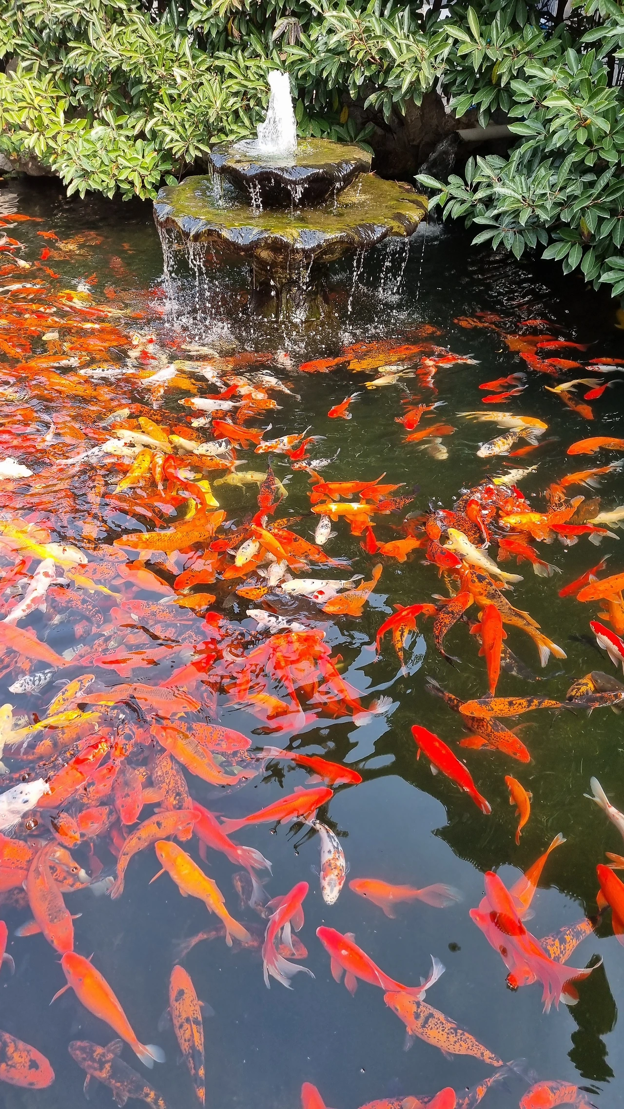 장랑과 전각 사이에는 예쁜 분수대가 있는 연못이 자리하는데 수백 마리 붉은 잉어 떼가 유유히 유영하는 연못 속은 수중 낙원처럼 보인다.