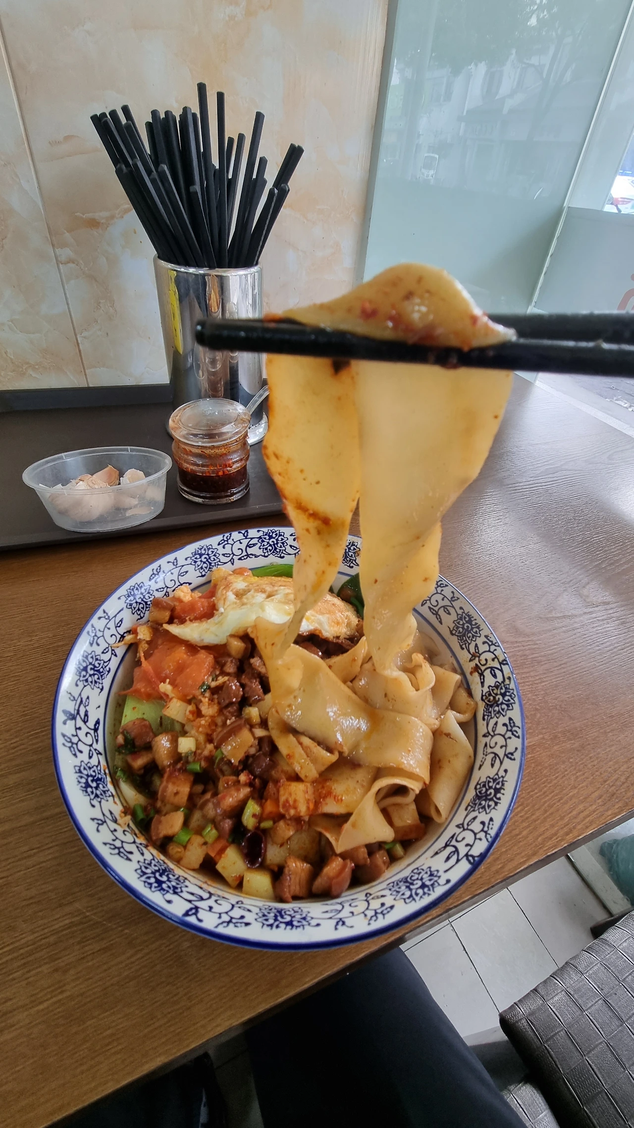 지난해 시월 뤄양 출행 때 중원 땅 관문 통관(潼关)에서 돌아오는 길에 화산북역 앞 식당에서 그 지방 고유 음식인 비앙비앙면을 처음 마주했었다. 특별했던 그 기억이 떠오르며 저절로 입가에 미소가 번진다. 큰 사발에 담겨나온 넓고 두꺼운 면발은 본고장 식당에서 보던 것과 별반 다름이 없는데 콩나물, 칭차이(青菜), 작게 썰은 돼지고기, 토마토 등 여러가지 재료가 함께 들어간 것이 훨씬 더 먹음직스럽고 그럴듯한 음식으로 보이게 한다.