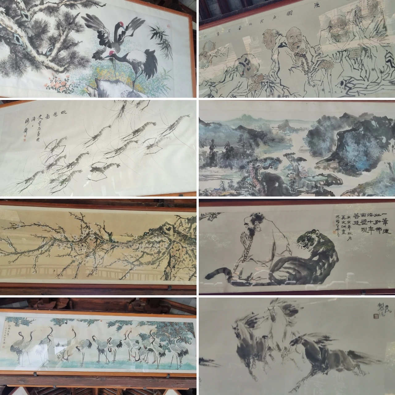 폭포를 휘감고 운해를 드리운 깊은 산속에 산사를 감추고 있는 <심산 장고사(深山藏古寺)>, 맹호를 옆에 둔 <십년면벽보살(菩提)>, 사이좋게 어우러진 두루미 한 쌍 <쌍학도(双鹤图)>, 흩날리는 눈발 속에 핀 매화 <비설영춘(飞雪迎春)>, 경인년에 그린 작은 고슴도치 한 마리를 눈앞에 두고 몸을 잔뜩 웅크린 맹호 <맹호도(猛虎图)>, 여름날 돛단배가 떠 있는 장강의 저녁나절 수묵화,