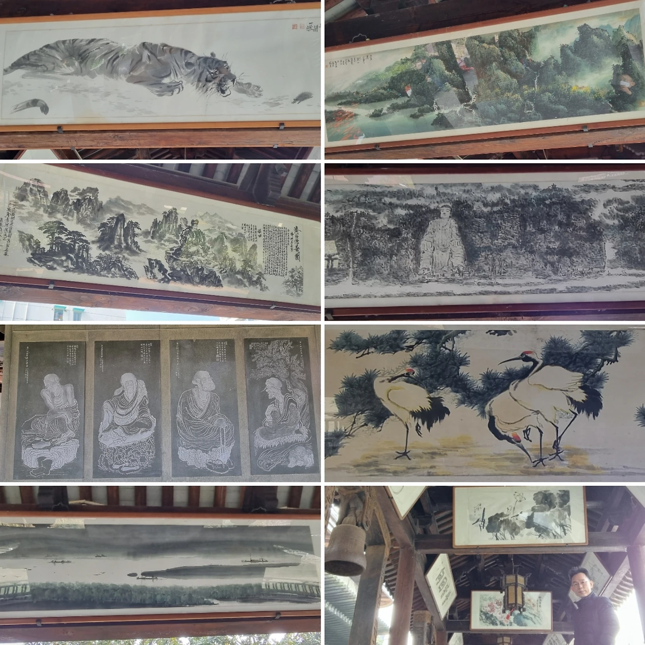 사찰 서편 쩐루강(真如港) 수로에 접한 장랑(长廊)을 이 사찰의 백미로 꼽을 수 있지 싶다. 고승들의 모습과 행적을 새긴 비각과 함께 각종 수묵화를 액자에 담아 걸어 두었는데 제목만 대충 훑어보는데도 한참이 걸렸다.