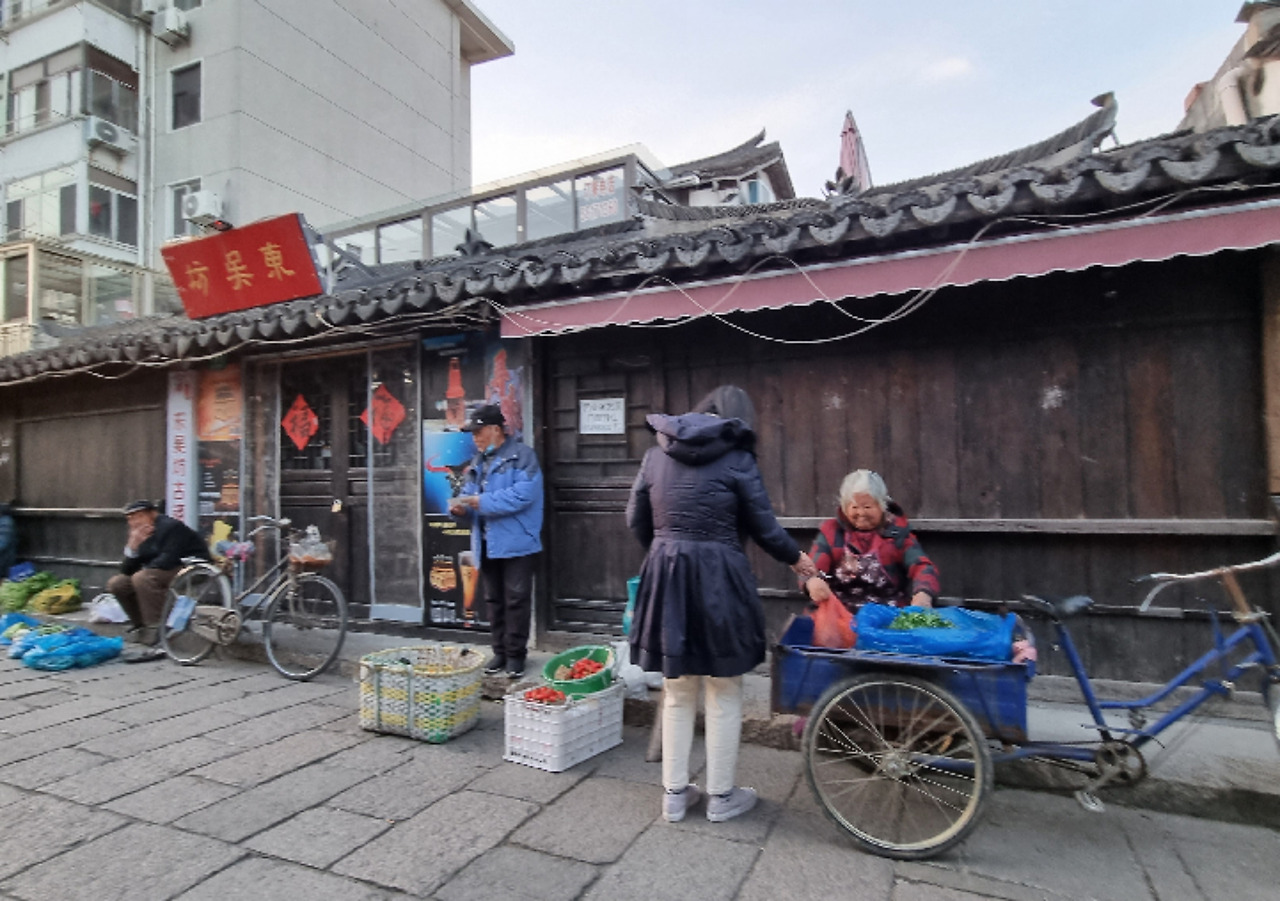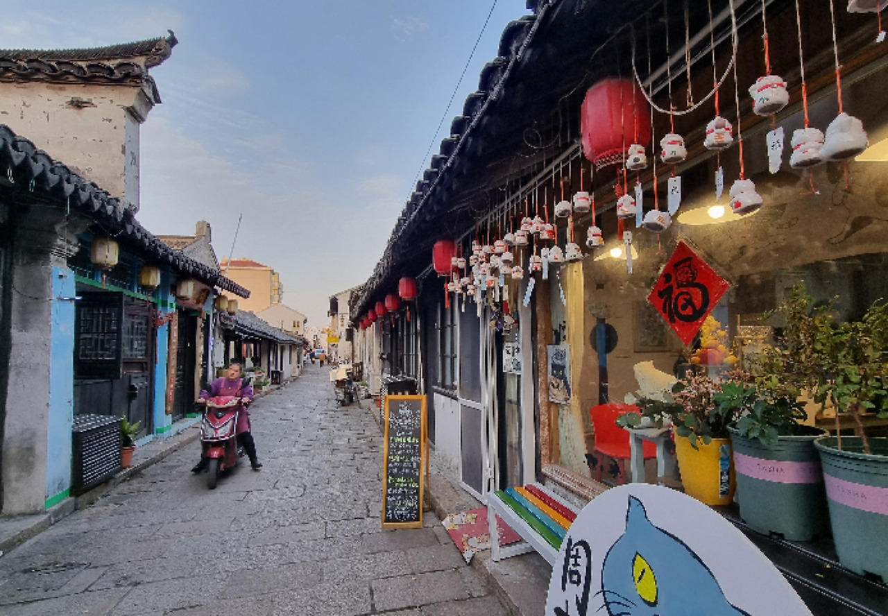 강남지역 수향 특유의 수로와 좁은 골목 사이에 길게 줄지어선 낮은 기와지붕이 여느 구쩐과 별반 다르지 않다. 열린 대문 너머 가가호호에서 새어 나오는 주민들의 이 지역 사투리 대화 소리가 표준어인 푸퉁화(普通话)와는 완전히 달라 중국이 아닌 다른 나라에 와 있는 듯 색다르다.