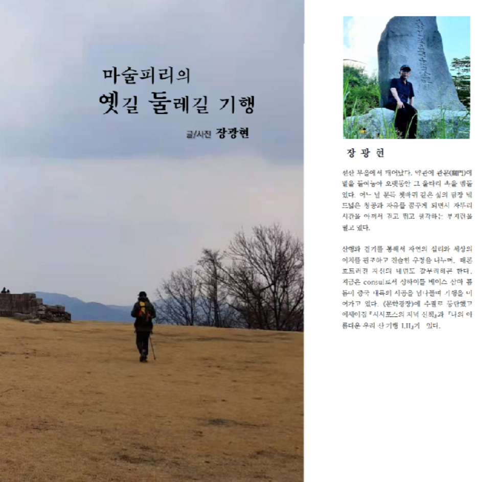 언제 끝이 날지 알 수 없는 창살 없는 감옥생활을 계기로 서울 둘레길, 한양도성 순성길, 경기옛길_영남길, 그리고 성남 누비길을 걸으며 긁적여 두었던 직접 보고 듣고 느낀 사실과 감흥을 한데 모아서 한 권의 책으로 엮어 보았다.