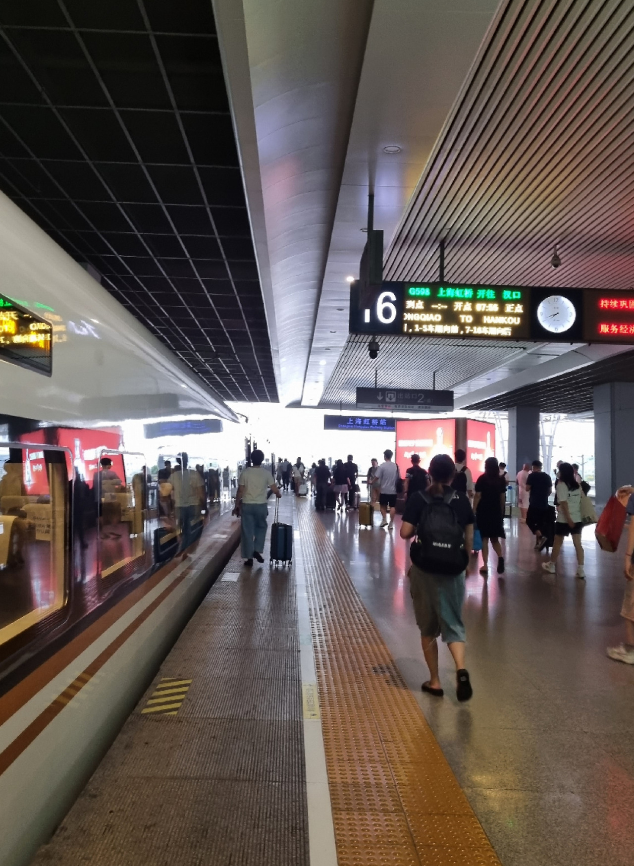 소요진 공원을 나서서 열차 시간을 최대한 당겨서 상하이로 돌아갈 요량으로 사우나 한증막에서 도망치듯 차를 불러 허페이 역으로 행했다. 출발 시각을 두 시간여 당겨 17:12 출발 20:14 상하이 홍챠오 역 도착 열차에 올랐다. 빈 좌석이 거의 없이 승객을 가득 채운 열차 안은 체온과 희석된 냉기가 적당해서 금세 몸이 편안해졌다. 고속 열차는 난징 남역 외에 쩐장(镇江), 단양(丹阳), 창저우(常州), 우시(无锡), 쑤저우(苏州), 쿤샨(昆山)에서 각각 정차를 했고, 그 때문에 세 시간 만에 상하이에 도착했다.
