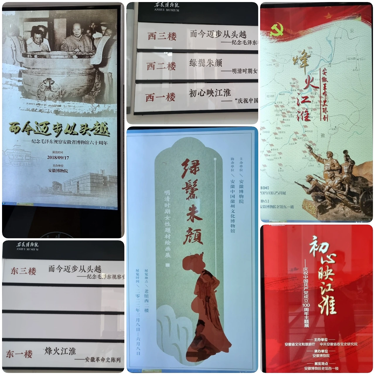 기차역에서 택시로 이십여 분만에 첫 행선지인 안후이성박물관에 도착했다. 입구에서 '안캉마(安康码)' 제시를 요구하는 안내원에게 외국인이라 휴대폰에 표출이 되지 않는다는 설명과 함께 48시간 내에 핵산 검사 결과 음성임을 확인하는 녹색 '수이선마(隨申码)'와 여권을 제시하고 인적사항을 기재하고서야 박물관으로 입장할 수 있었다. 박물관 규모는 예상했던 것보다 훨씬 작고 아담했다. 더군다나 공산당 혁명, 항일전, 국공내전, 공산당 정권 수립 후 역대 지도자들의 박물관 방문 사진 등으로 채워진 내부의 모습은 실소를 터트리게 하기에 충분하다.