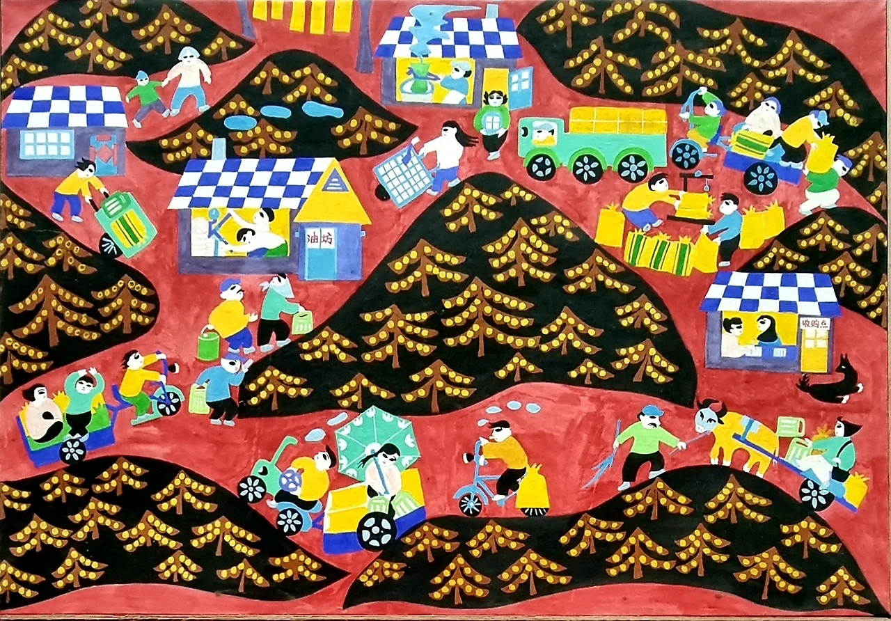 1988년 봄 국가 문화부가 전국 51개 마을을 '화향(画乡)'으로 지정하면서 농민화 발전의 전기가 마련되었다고 한다. 농민화가 화단에서 하나의 독보적인 위치를 차지하기까지는 정책적 지원도 한몫했음을 알 수 있다.