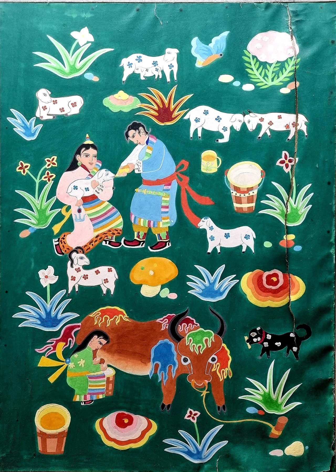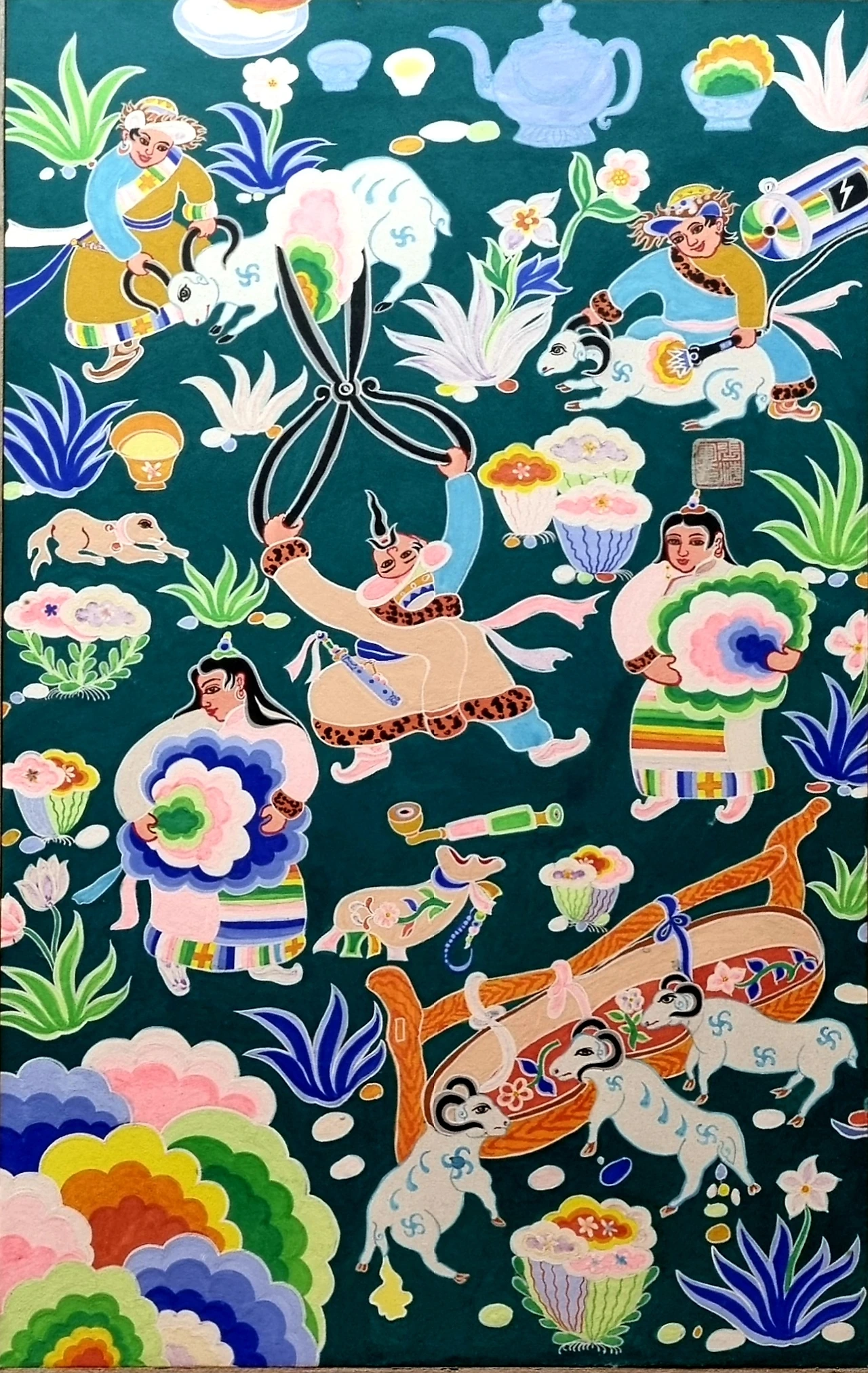 칭하이(青海) 지역 작품 <양털 깎기(剪羊毛)>