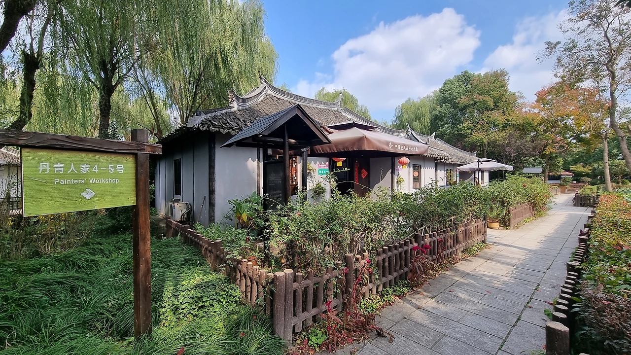 가을의 한가운데 주말이다. 한 시간 가량 차를 몰아 상하이에서 서남쪽으로 약 60km 떨어진 진샨(金山) 농민화 촌에 닿았다. 안내도를 보니 농민화 촌은 축구장 서너 개 크기 면적에 '중국 농민화 박람원'과 '단청인가(丹青人家)'라 불리는 농민화가 화랑 열다섯 채가 수로를 끼고 자리하고 있는 단출한 마을이다.