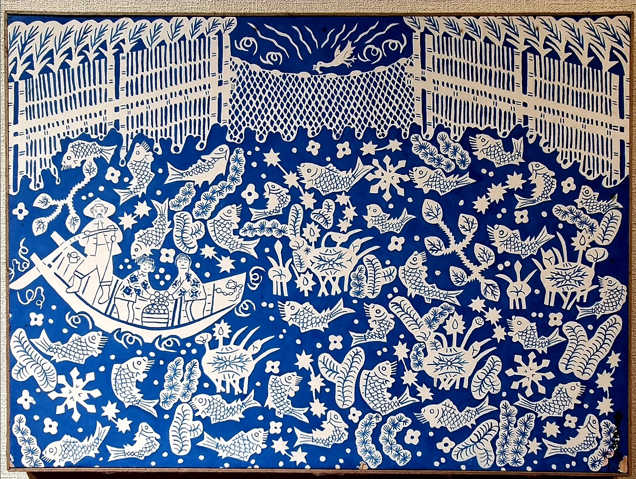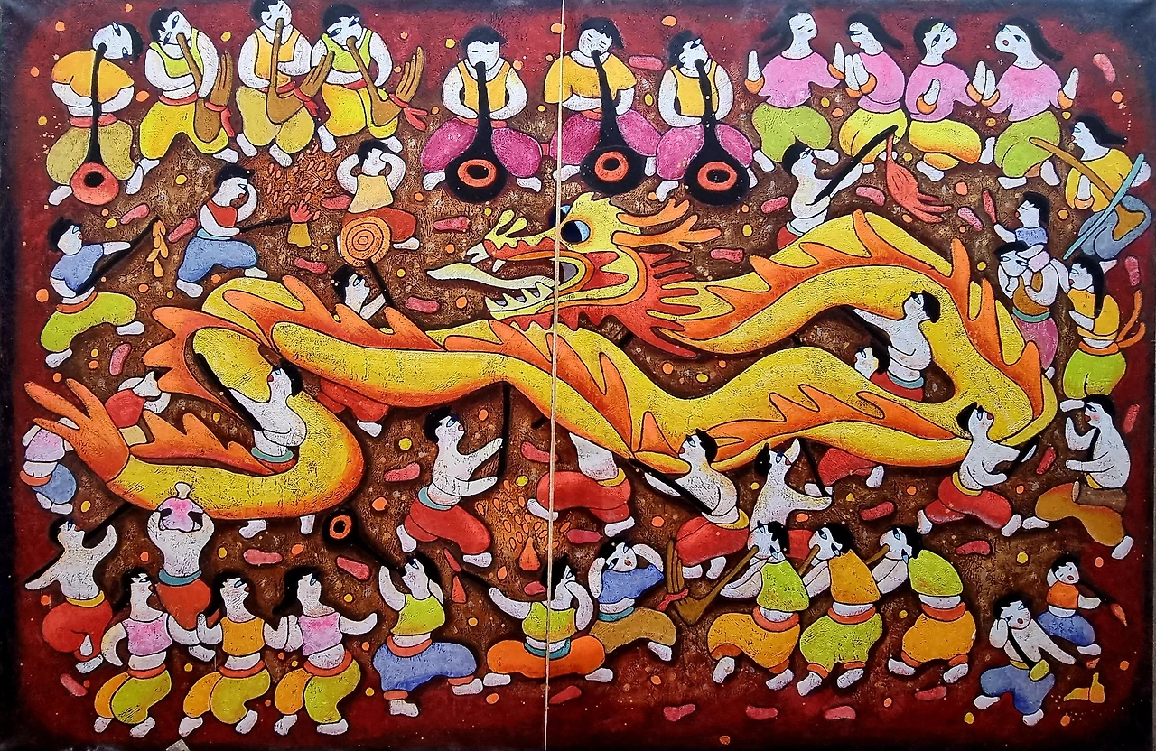 그 옆으로 광동 롱먼(龙门), 텐진 베이천(北辰), 저장 시우저우(秀洲) 지역 농민화와 윈난 관뚜(官渡)의 <용춤(龙舞官渡)>, 충칭 치장(綦江)의 <용무인환(龙舞人欢)>, 장쑤 보리(博里)의 <여가 시절(如歌时节)> 등 작품이 벽면을 채우고 있다.