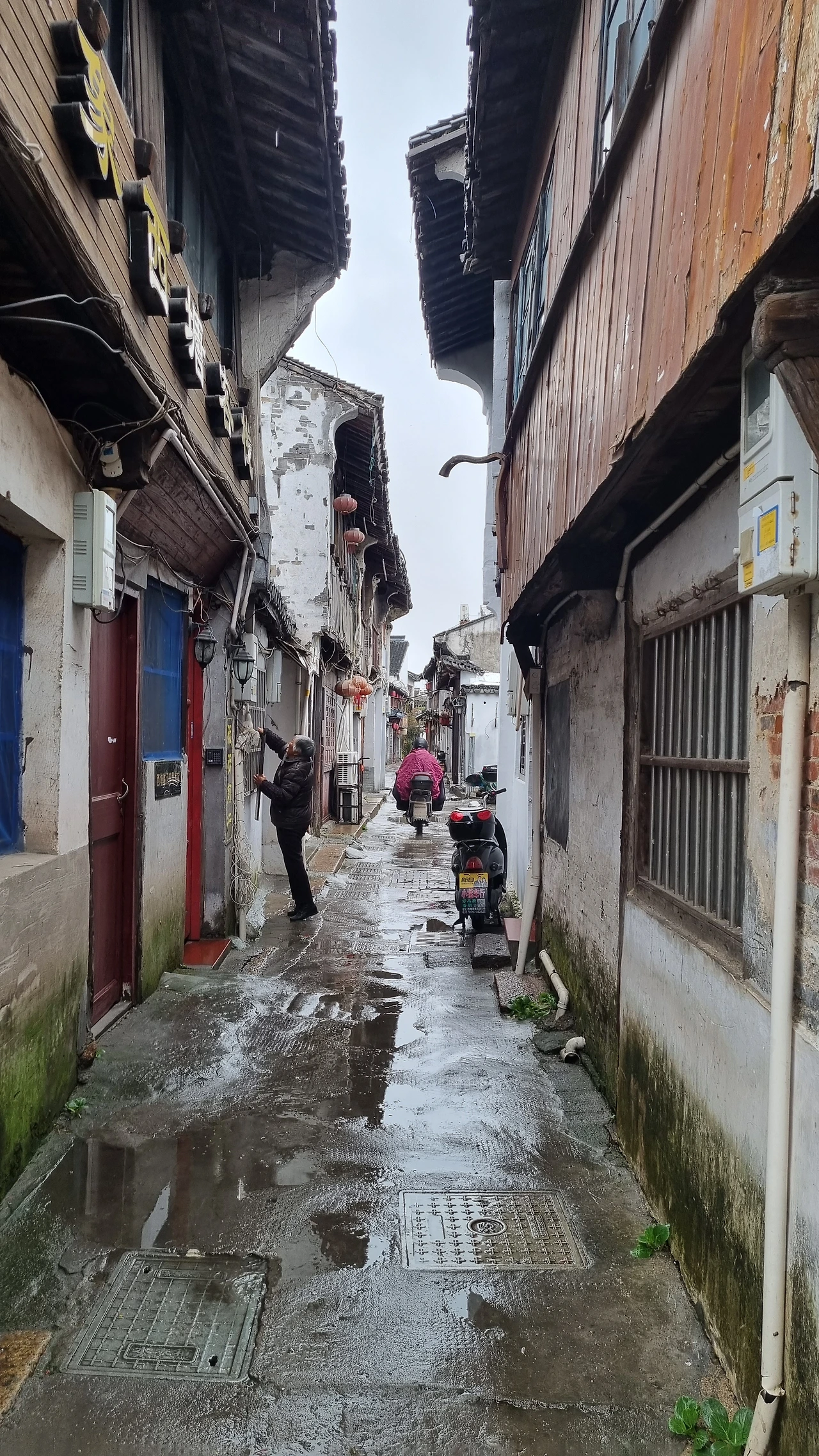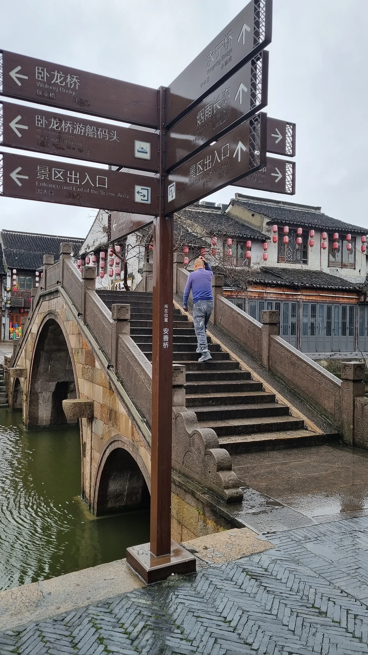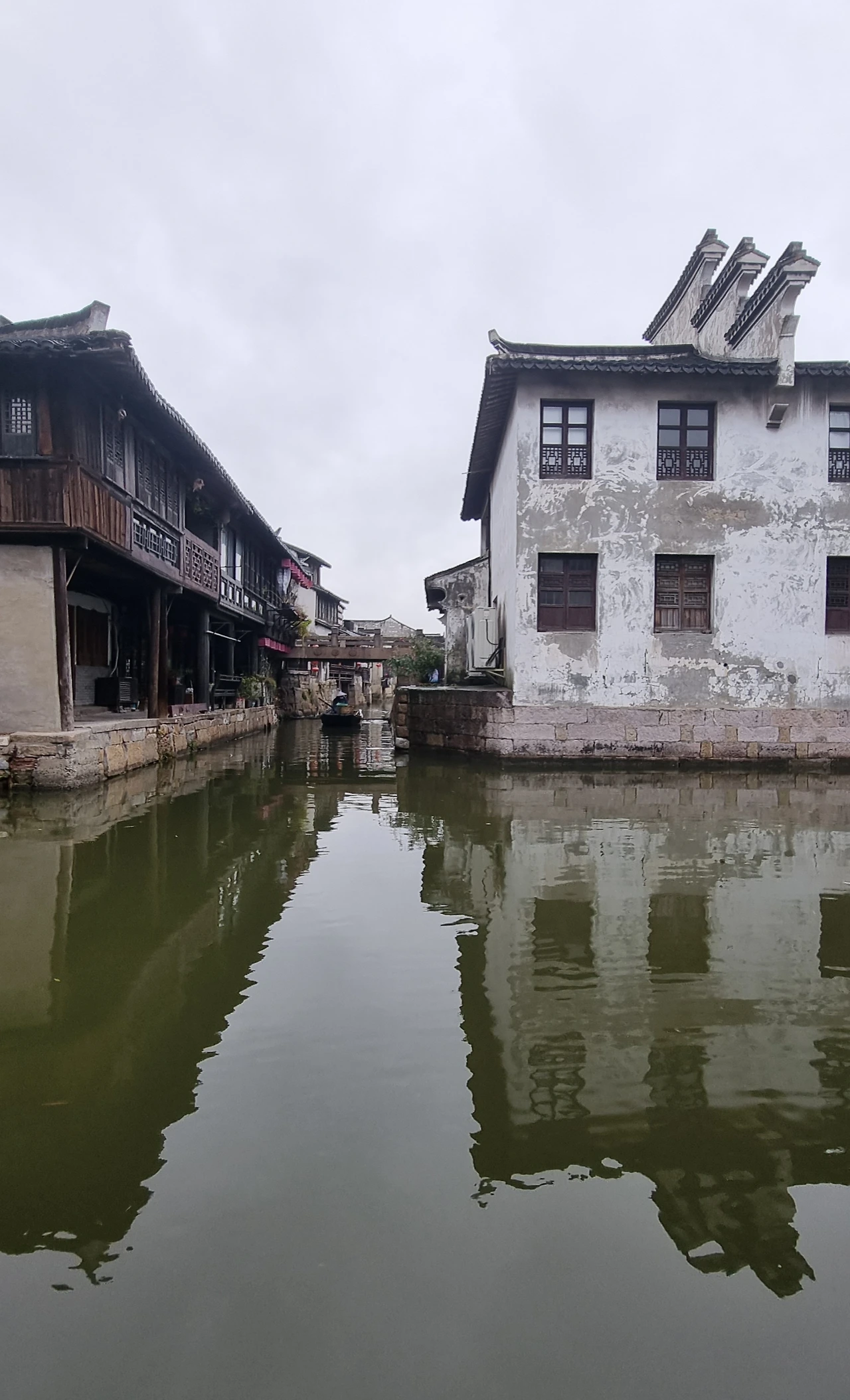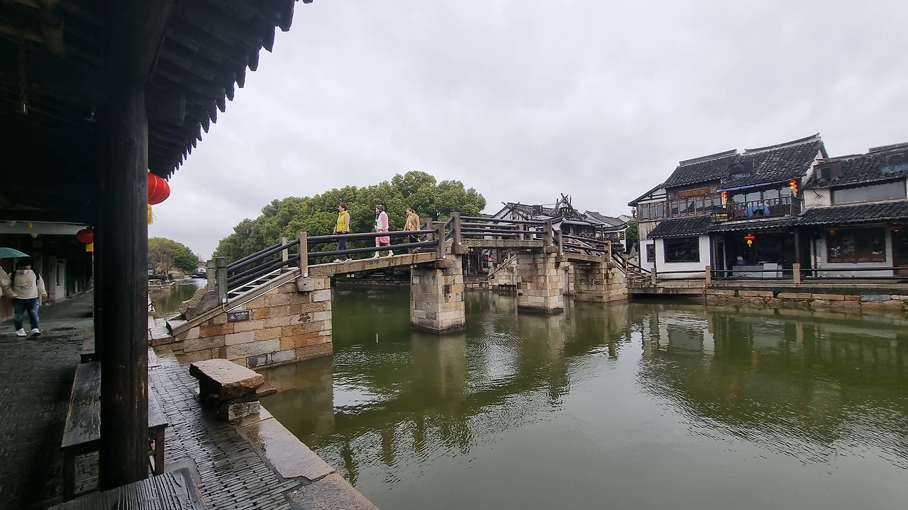 수로변을 따라 길게 이어진 가옥 상점들은 대부분 문이 닫혔고, 어깨가 맞닿을 듯 좁은 길 입구 담벼락마다 객잔 명패들은 언제 올지 모를 관광객들을 말없이 기다리고 있다. 수로 위 안태교(安泰桥)는 네덜란드 어느 농촌 마을을 그린 풍경화 속 운하 위에 걸린 도개교를 닮았다. 바람에 흔들리는 물 위에 내려앉아 어른거리는 모습이 한 편의 그림이다.