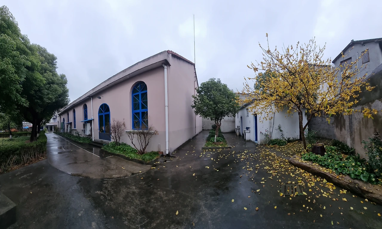 건물 맨 안쪽 뒷담장 옆에 4~5미터 높이 라메이(腊梅)가 가지마다 앙증맞은 작은 꽃망울을 터트리고 만개했다. 흩뿌리는 비를 무릅쓰고 곁에 다가가서 눈을 맞추니 귀여운 노란 꽃봉오리에 빗물이 맺한 모습이 더욱 사랑스럽다.