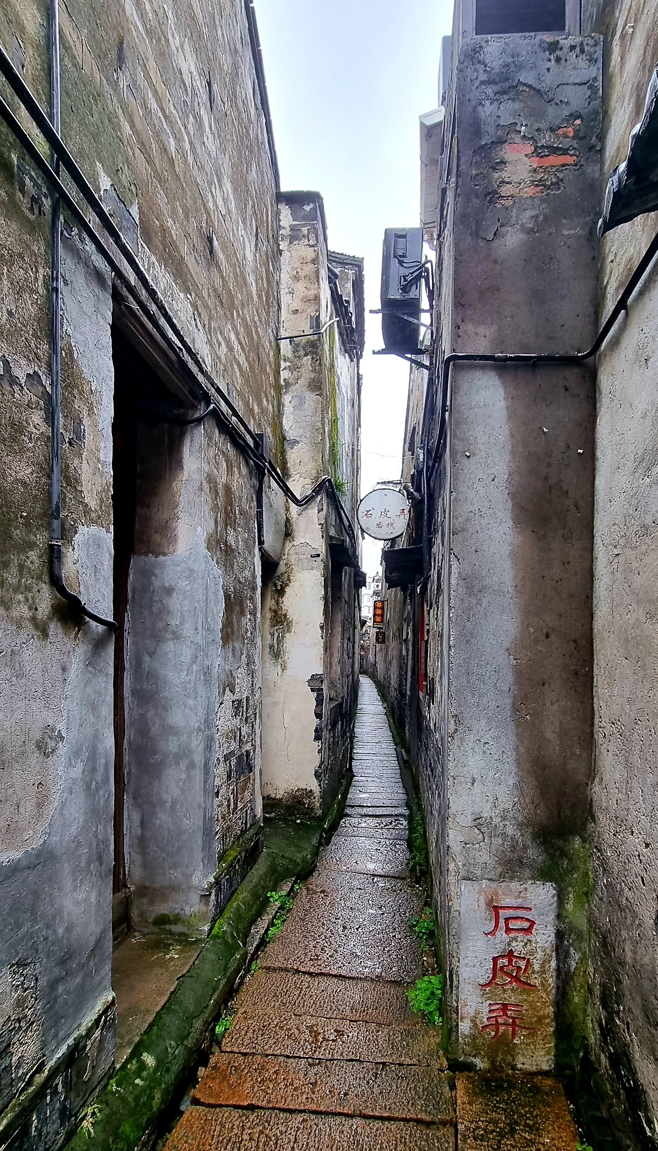 길 아래 하수구 위로 두께 3cm의 216개 슬레이트를 덮었기 때문에 '석피농(石皮弄)'이라고 불리는 이 골목은 가장 넓은 곳이 1.1m, 가장 좁은 곳이 0.8m에 불과하다고 한다. 우산을 접어야만 들어설 수 있는 이 골목은 높다란 담벼락 사이로 좁고 긴 하늘을 펼치고 있어 '일선천(一線天)'이라는 별칭이 제격이라는 생각이 든다.