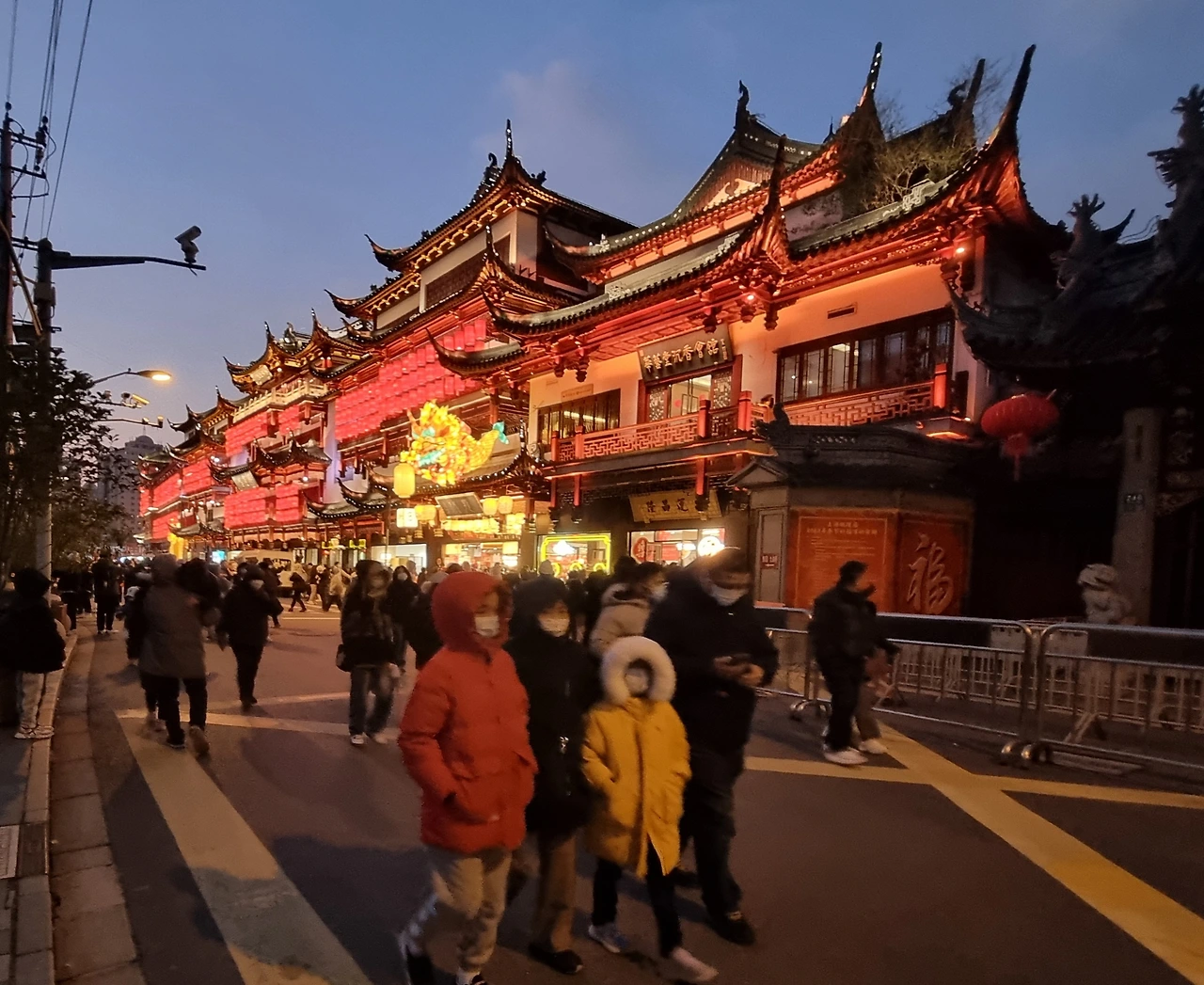 네 시간 여 서점 투어를 끝내고 귀가하는 길에 전철이 지나는 예원(豫园)에 들러 주변을 둘러보기로 했다. 많은 인파로 북적이는 전철역과 예원 주변에는 경찰 차량과 안전 요원들이 인파의 이동을 한 방향으로 통제하고 있다. 불과 몇 주 전까지 이어진 코로나19 방역을 위한 통행과 출입 통제가 먼 옛이야기가 되어버린 듯하다.