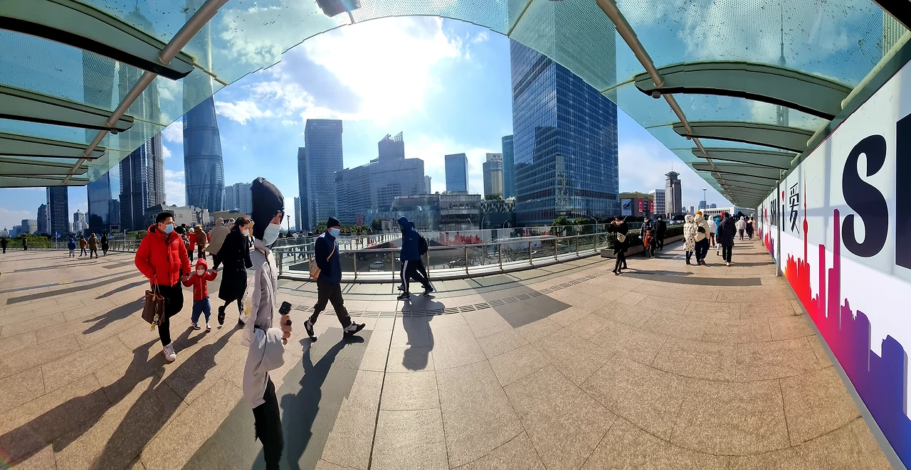 다시 2호선을 타고 두 정거장 떨어진 푸동 루지아주이(陆家嘴) 역에서 내렸다. 출구로 나서니 황푸강 건너편 와이탄 쪽에서 바라보던 고층 건물들이 머리 높이 우뚝 솟아 시선을 압도하며 내려다보고 있다. 그중 대표적 건물이 동방명주(468m), 진마오 타워(金茂大厦; 88층, 420.5m), 세계금융센터(环球金融中心; 101층, 492m), 상하이센터빌딩(上海中心 ;127층, 632m) 등이다.