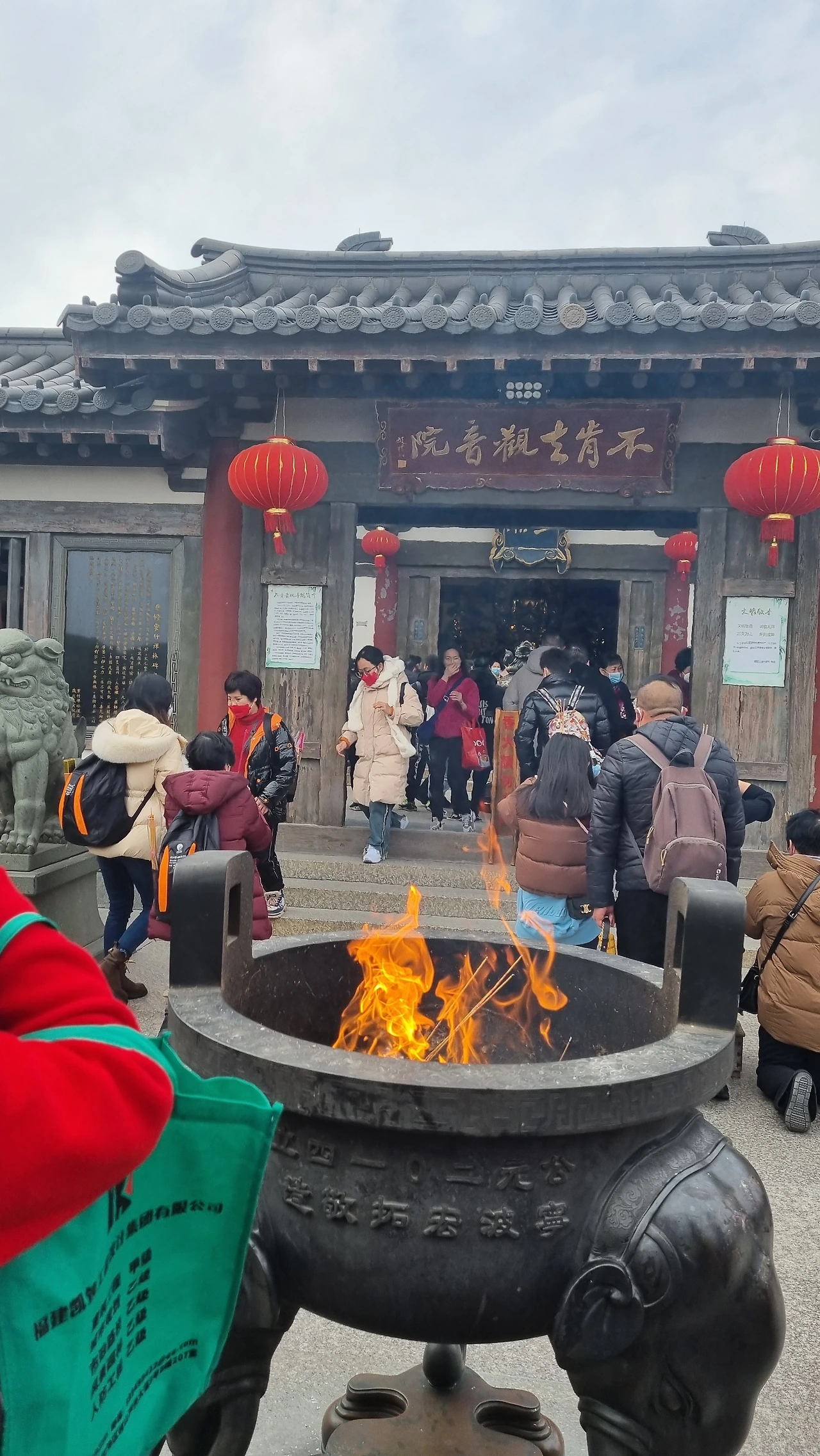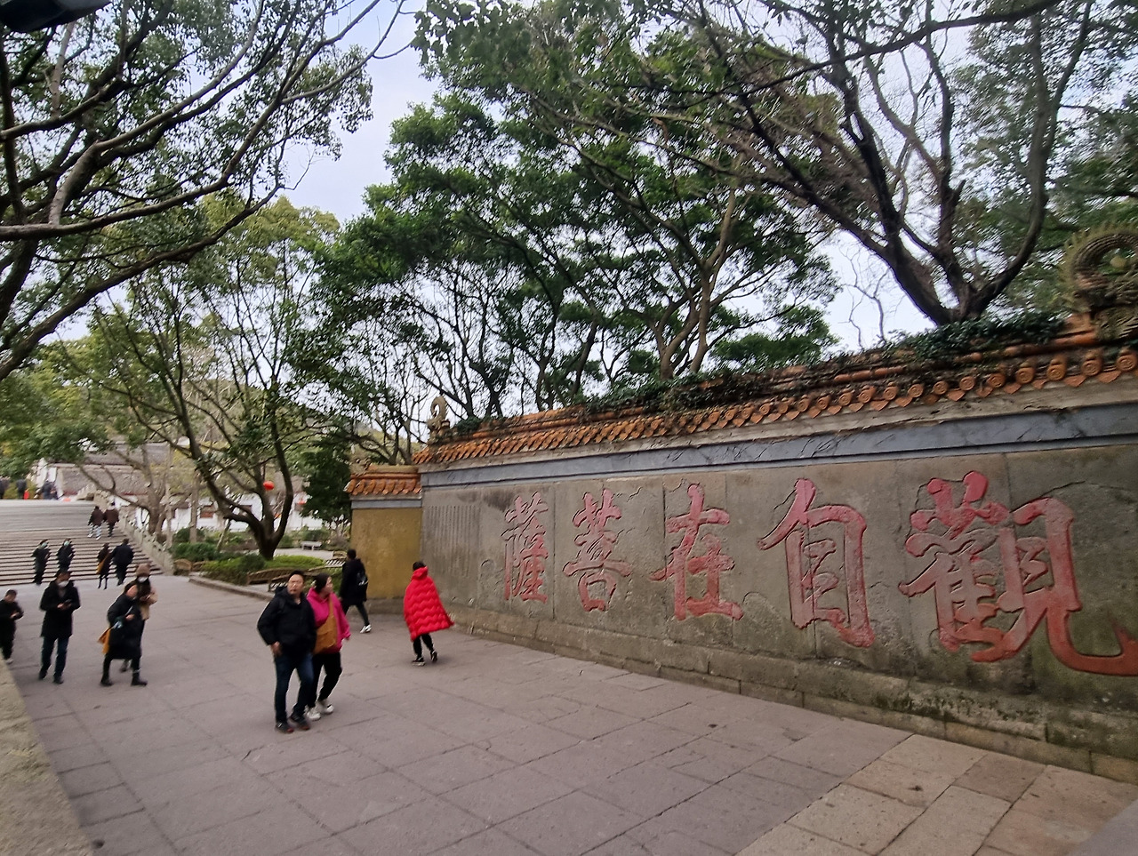 각종 색상과 도안의 깃발을 든 안내원이 이끄는 관람객들 틈에 끼어 자죽림선원(紫竹林禅院)과 불긍거관음원(不肯去观音院)으로 향했다.