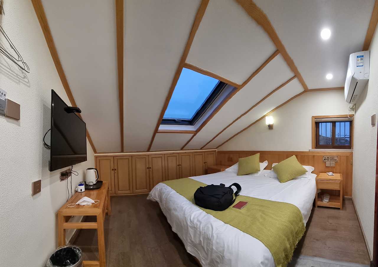 객잔 촌 입구로 마중을 온 오십 초반쯤으로 보이는 건장한 객잔 주인은 타고 온 자전거를 끌며 앞장서서 자신의 객잔으로 인도한다. 객잔 주인 아들이 손을 뻗으면 닿는 천장에 창이 있는 3층 지붕밑 객실 방으로 안내한다. 키를 건네받아 단출한 배낭이나마 내리니 어깨가 한결 홀가분해진다.