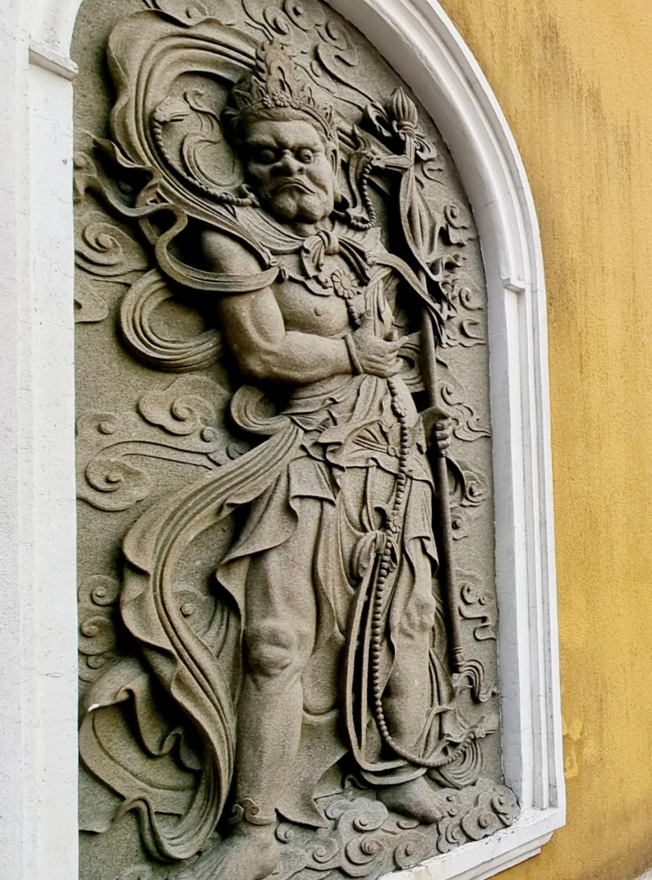해안까지 뻗은 가장자리에서 서천경구(西天景区)로 들어서니 해발 50미터 높이에 개병선원(芥瓶禅院)이 자리한다. 금강역사상 부조 두 위가 굳게 닫힌 선원의 정문 양쪽에서 굳센 기상을 뿜어 내며 불문을 지키고 서있다.