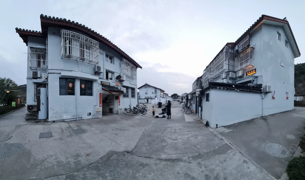 일정 구역에 조성된 객잔촌에는 빌라형 3층 높이 건물이 족히 수 백 동이 모여 있다. 그 입구 너른 공터 빨래 건조대에 수 백 장의 흰 천이 가지런히 걸려 있는데 아마도 객잔의 침대보를 말리는 것임에 틀림없어 보인다.