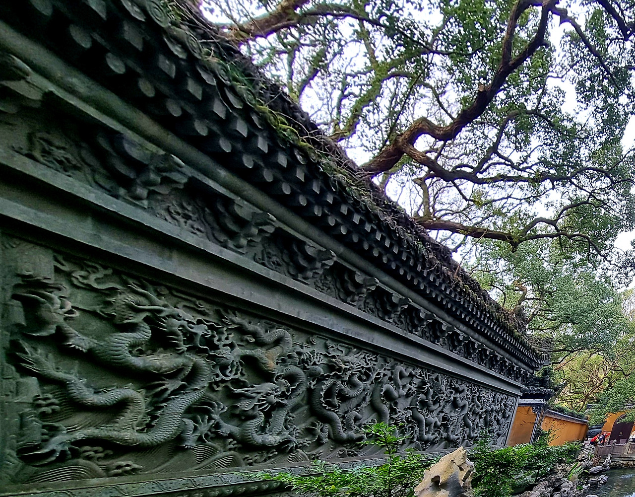 중국에서 북경 고궁 후원 담벼락과 이곳 단 두 곳에만 있다는 구룡벽은 작은 연못 뒤에 자리하고 있다. 살아 움직이는 듯 꿈틀대는 돋은 새김 아홉 마리의 용이 다섯 개의 여의주를 두고 유희하는 모습에는 생동감이 넘친다.