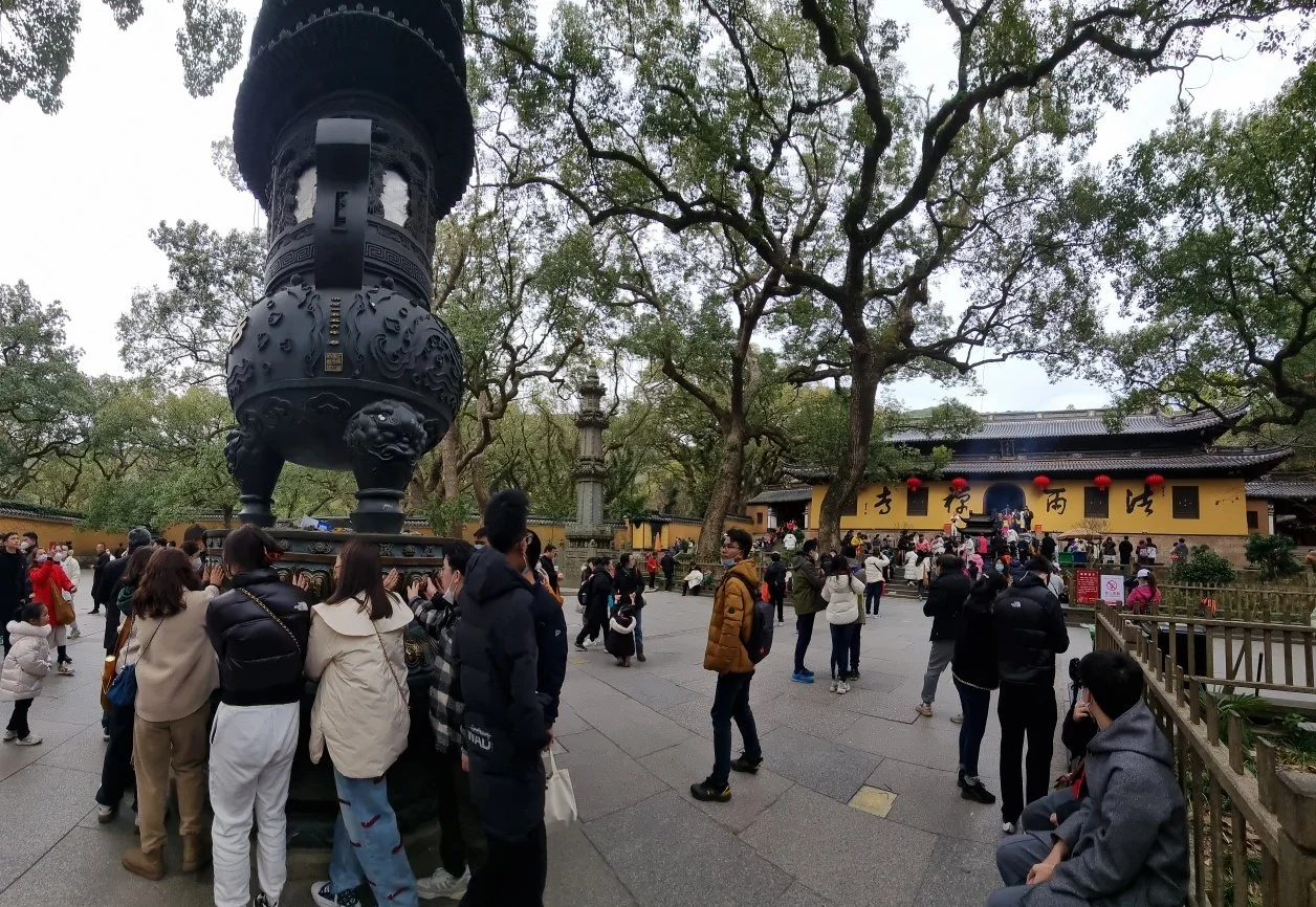 여러 명의 동자들이 큰 조롱박을 끄는 기념 조형물 주변을 둘러보고 산정 뒤편에 자리한 혜제선원의 천왕전과 구릿빛 석가모니상을 모신 대웅보전 등을 살펴보았다. 이곳도 보타산 여느 명승지와 마찬가지로 사람들로 북적대기는 마찬가지다.