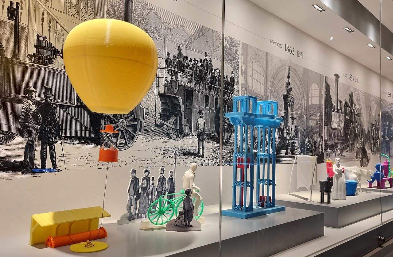 제2전시관 한쪽 벽면의 진열장 속에는 엑스포별 당시 새로 발명되거나 일상화된 주요 물품의 미니어처와 설명이 아래와 같이 시대별로 전시되어 있다. 세계박람회가 각 참가국들이 최첨단 과학과 기술력으로 만들어 낸 제품들의 경연장으로서의 역할을 하고 있음을 알 수 있다.