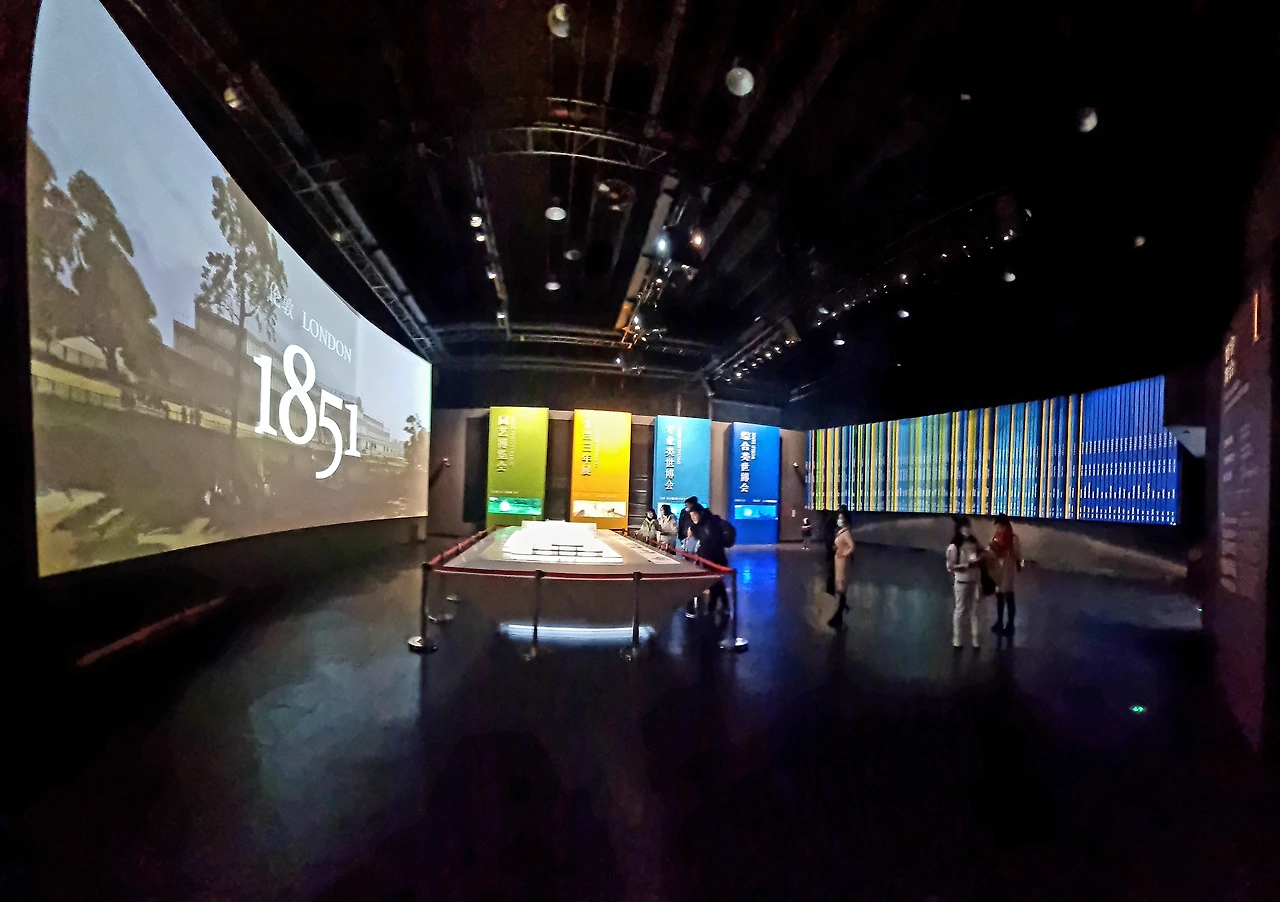 제1전시관은 월드 스테이지로 엑스포 총람, 만국박람회, 파노라마 파리 등 3개 코너로 구성돼 있다. 1층 중앙홀에서 전시관으로 들어서면, 첫 세계 박람회인 1851년 런던 월드 엑스포를 필두로 55년 파리, 62년 런던, 67년 파리, 73년 비엔나, 76년 필라델피아 등 19세기에 개최된 박람회의 개최 연도와 도시를 표기한 세로형 긴 막대가 블라인드처럼 한쪽 벽면을 가득 채우고 있다.
