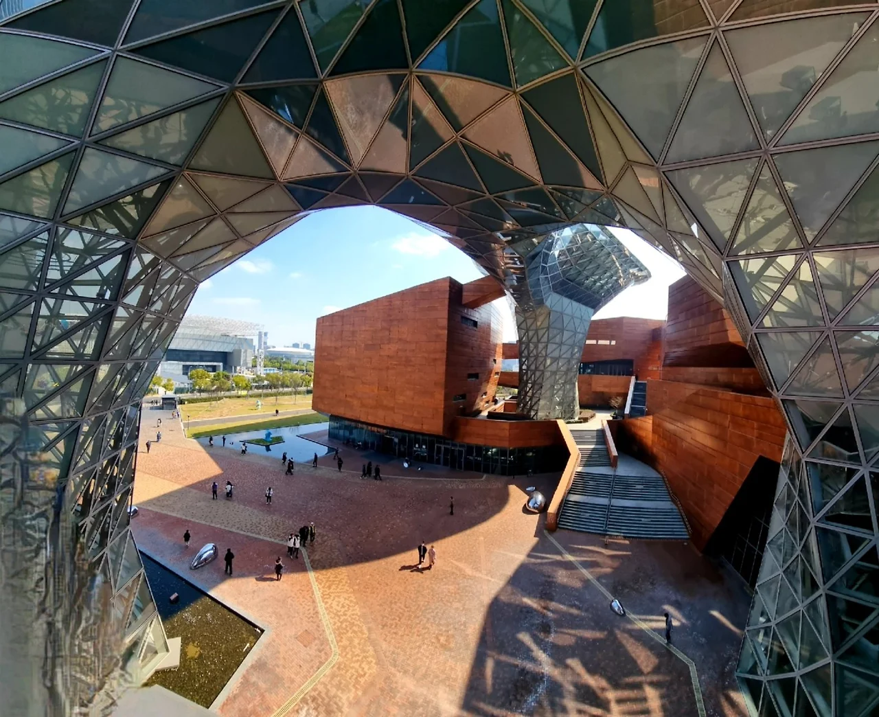 출구로 통하는 '역사의 골짜기(Valley of history)'는 박물관 내부와 건물 중간층 높이의 외부로 연결된 공간으로 베이지색 사암 바닥과 구리-알루미늄 합성 벽면으로 건조되어 중후한 멋과 독특한 위엄을 뿜어낸다. 입체적인 건물 가운데 공간의 유리 철골 건조물은 충칭 선녀산(仙女山)의 천생삼교(天生三橋)를 닮은 듯도 하고 싱가포르의 가든스 바이 더 베이(Gardens by the bay)의 슈퍼 트리(Super tree) 조형물을 연상케도 한다.