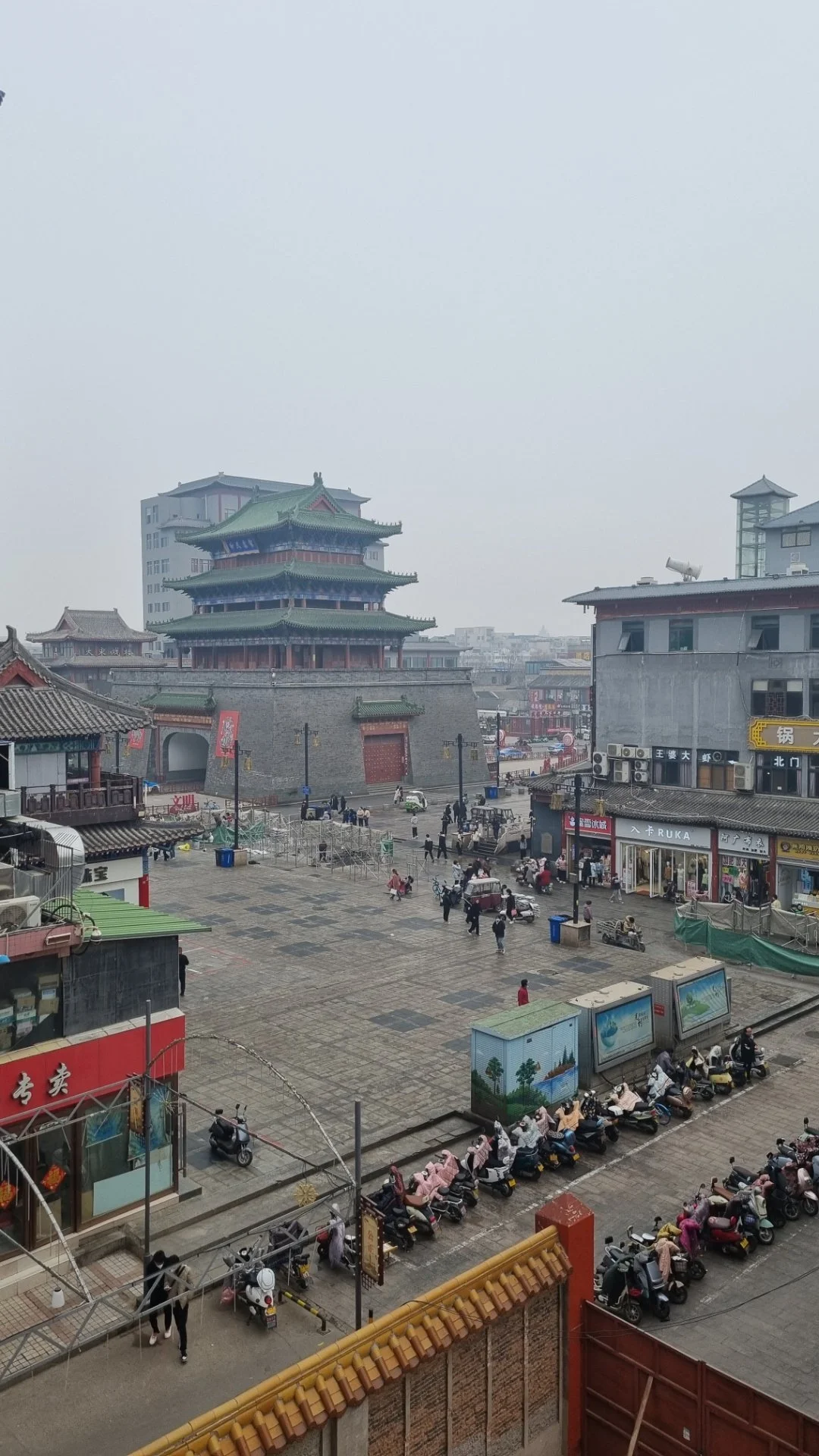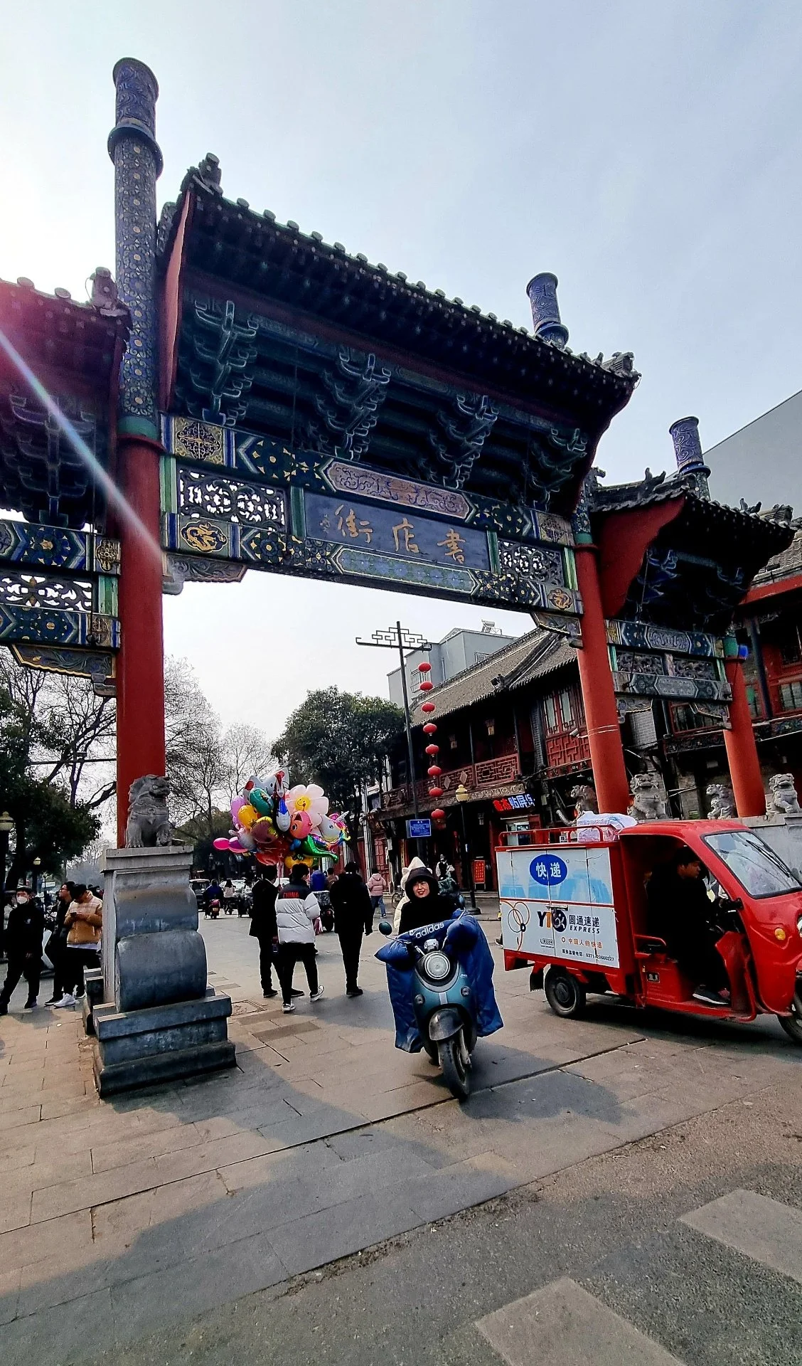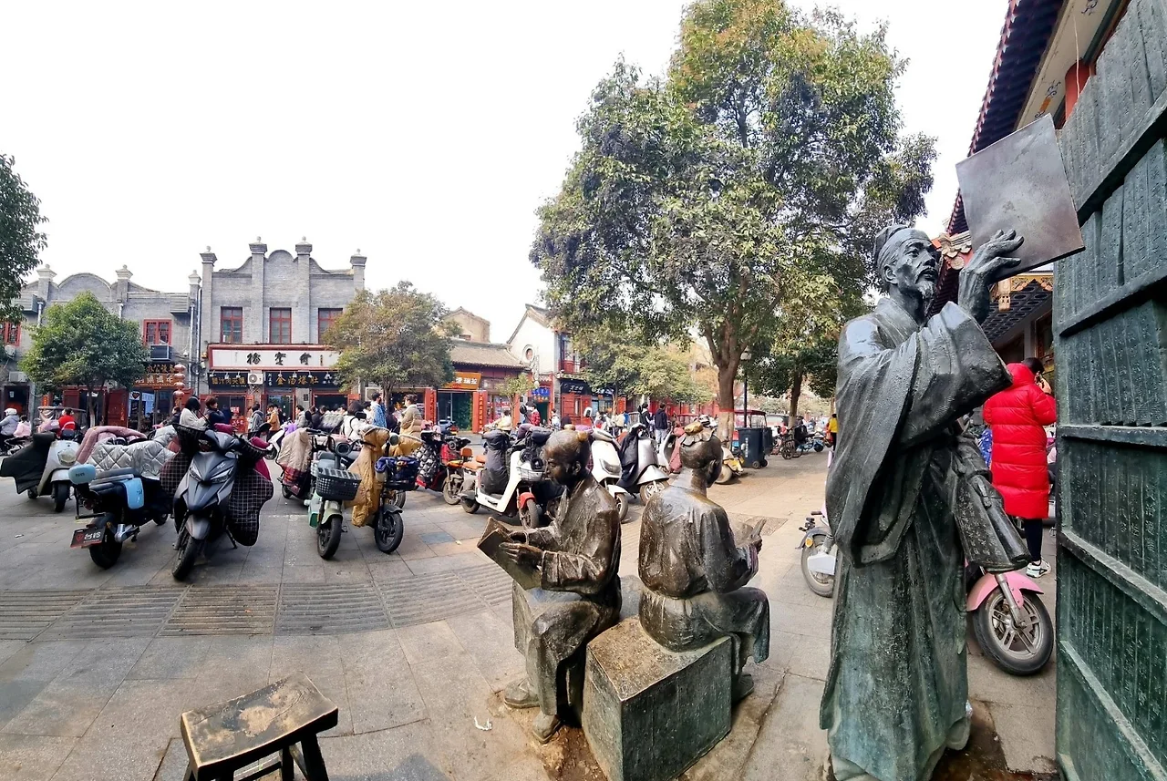 보행가가 동서로 뻗은 쓰허우지에(寺后街)와 만나는 지점에 성벽처럼 높은 기단 위에 우뚝 솟은 3층 건물 고루가 자리한다. 큰 북 두 개가 누각 문루 양쪽 옆에 자리한 고루 앞 건널목을 건너면 서점가(書店街)가 남북으로 길게 뻗어있다. 군데군데 오래되거나 세련되게 단장된 크고 작은 서점들이 눈에 띄는 이 거리에는 음료와 간식거리를 파는 각종 패스트푸드 가게들이 밀집해 있는데 젊은이들로 북적대어 활기가 넘친다.