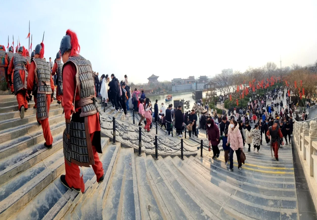 이처럼 관람객들로 넘쳐나는 모습은 900여 년 전 청명절 즈음 카이펑의 번화한 거리 모습과 흡사 하지 않을까 하는 생각이 든다.