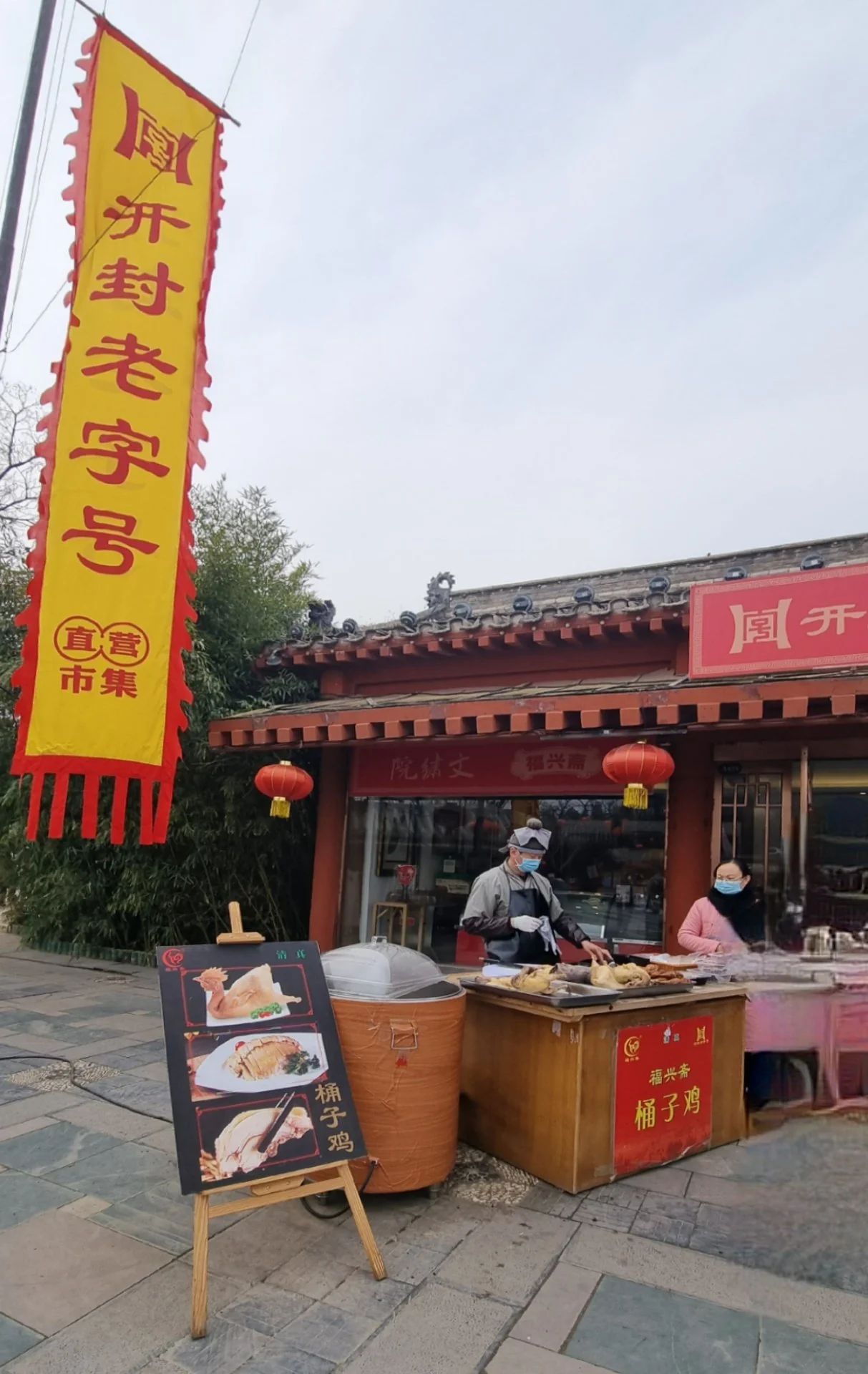 호수와 운하 등 물이 많아 오리 사육에 적당한 강남 지역과는 달리 이곳이나 북경 등 북방 지역에서는 카오야(烤鴨 )등 오리로 만든 요리는 고급 음식으로 자리 잡았을 것이다. 여 점원은 카이펑 사람들은 술을 마실 때 통즈지와 화셩까오를 함께 든다고 한다. 종이로 포장된 정사각형 모양의 화셩까오 한 덩이를 사들고 나왔다.