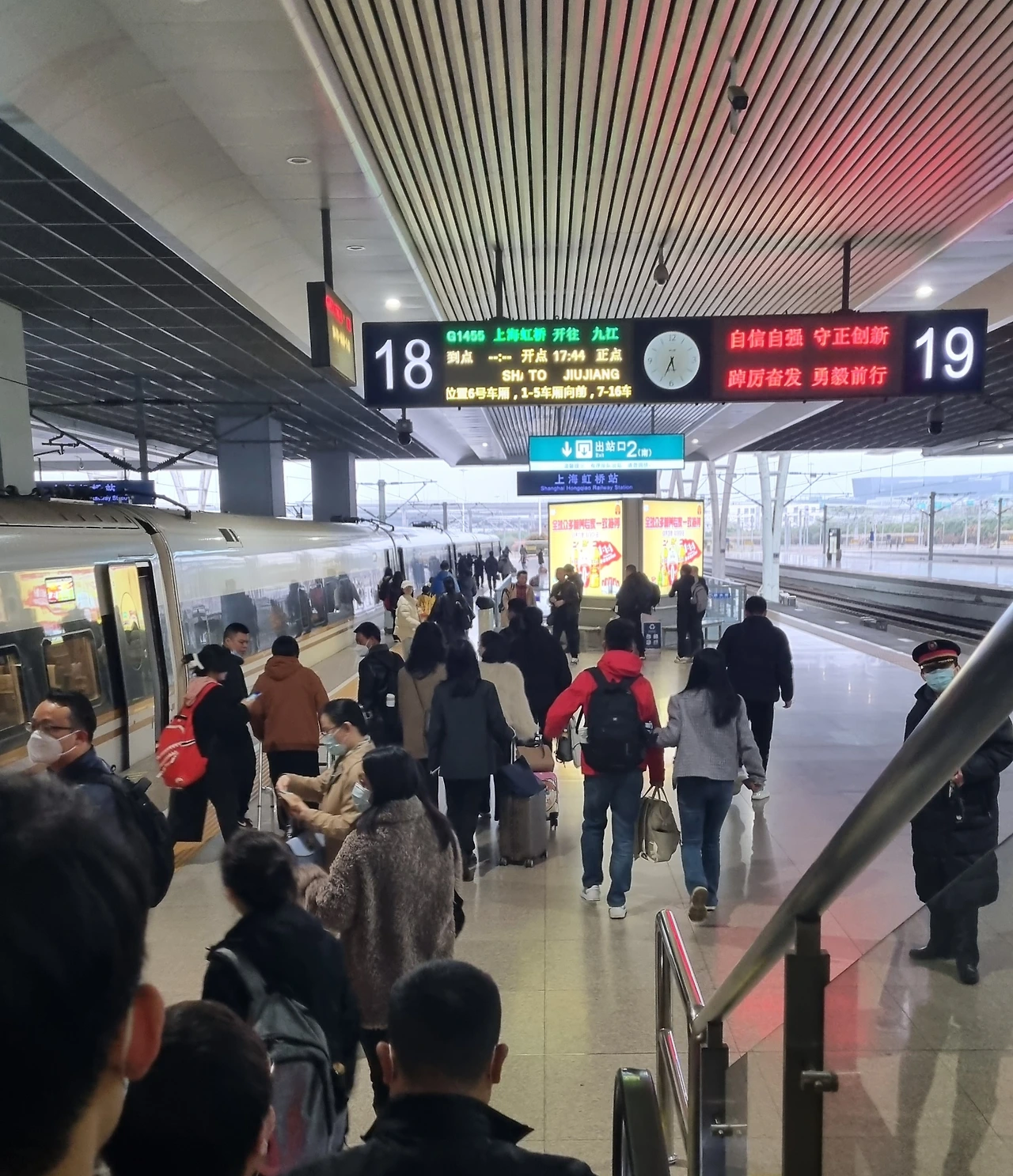 홍챠오(虹桥) 기차역은 오늘도 예전처럼 인파로 넘쳐나지만 코로나19 음성확인 철차가 없어져서 역사 안 진입과 탑승 절차가 한결 수월해졌다.