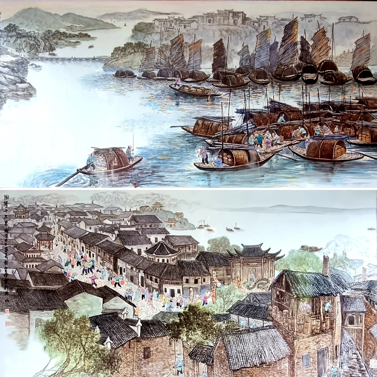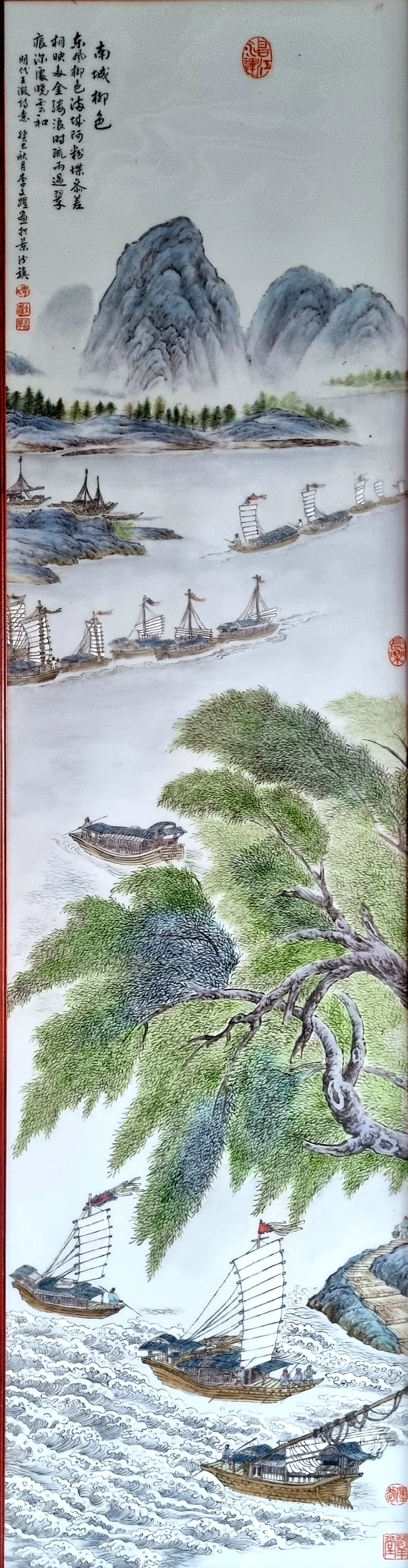그중 '남성유색(南城柳色)'이라는 표제가 붙은 도자 그림은 범선이 오가는 강가에 연초록 가지를 늘어뜨린 버드나무를 사실적으로 묘사하고 있는데, 봄이 기지개를 켜는 이맘때쯤 이곳의 번성했던 시절의 모습을 어림짐작케 해 준다.