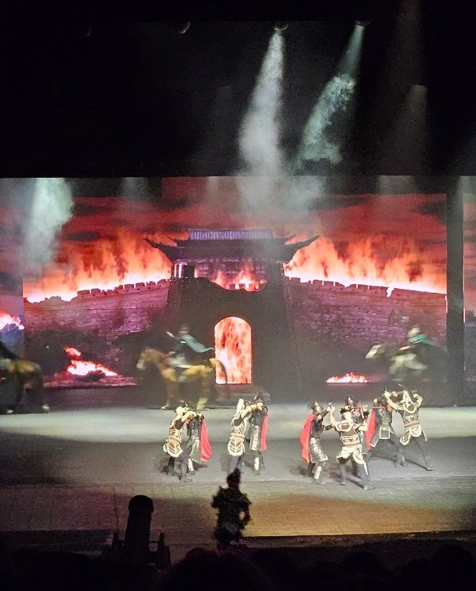 송청그룹이 한국인들의 호응에 감사를 표하기 위해 장고춤 장면과 삿갓을 쓴 고려 사신이 황제의 용상 옆 단 위에 서서 가무를 감상하는 장면을 무대에 삽입했다는 가이드의 설명이다. 그 말이 사실인지 아전인수격 해석인지 알 수가 없다.