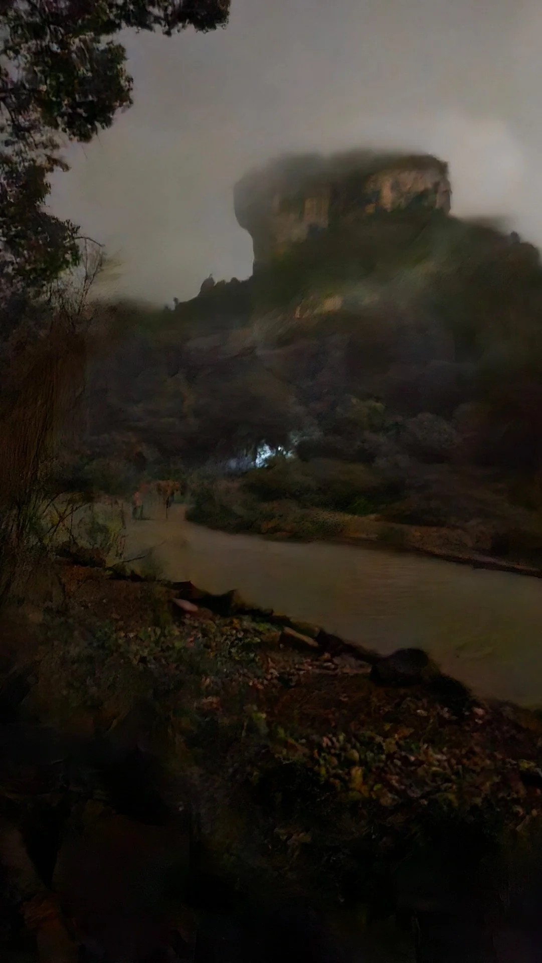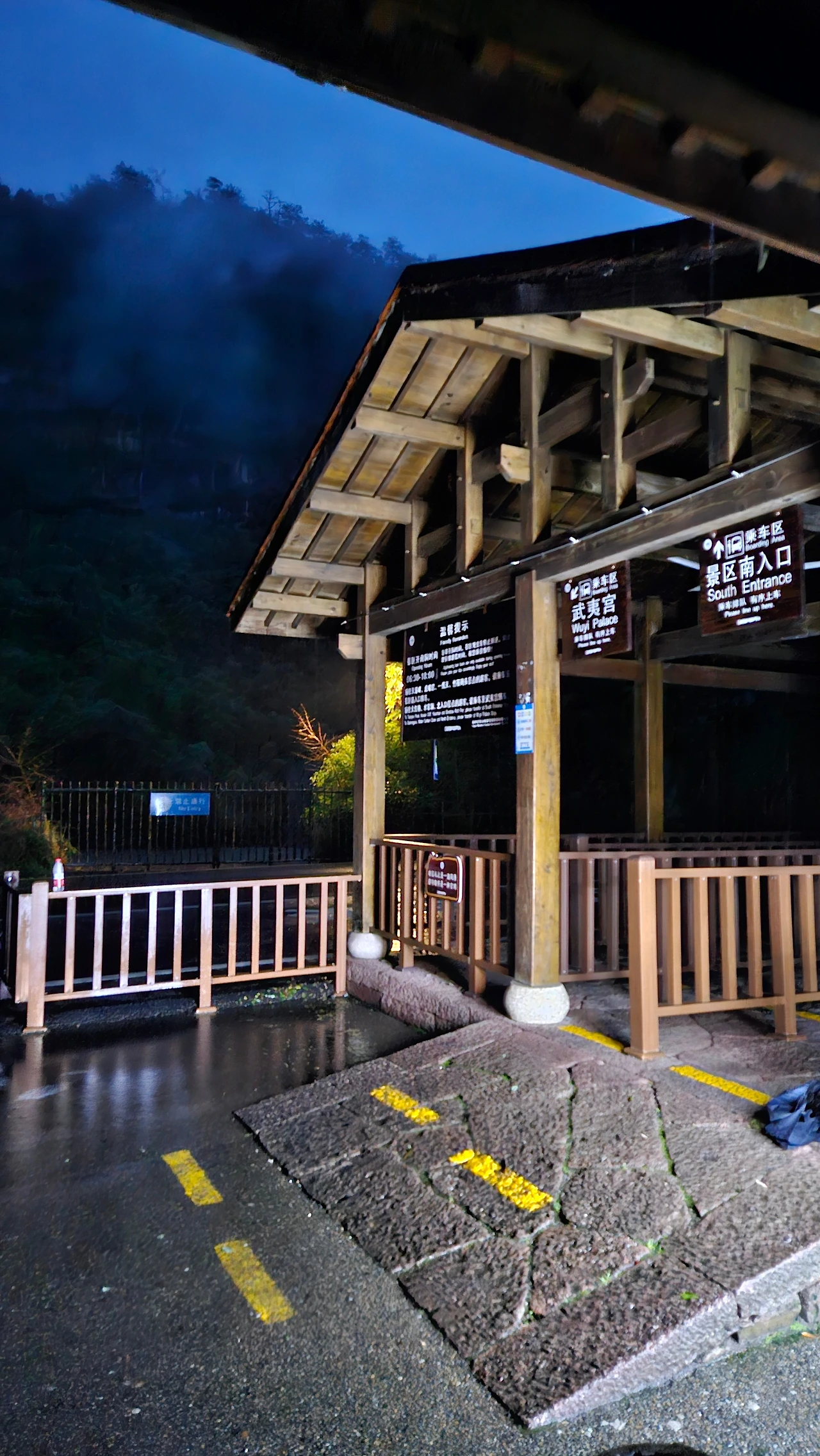 우이산역 역사는 희미한 윤곽을 드러내고 있고 사방은 어둠과 굵은 빗줄기 속에 잠겨 있다. 스마트폰으로 택시를 불러(따처; 打车) 우이산 남쪽 입구로 향했다.