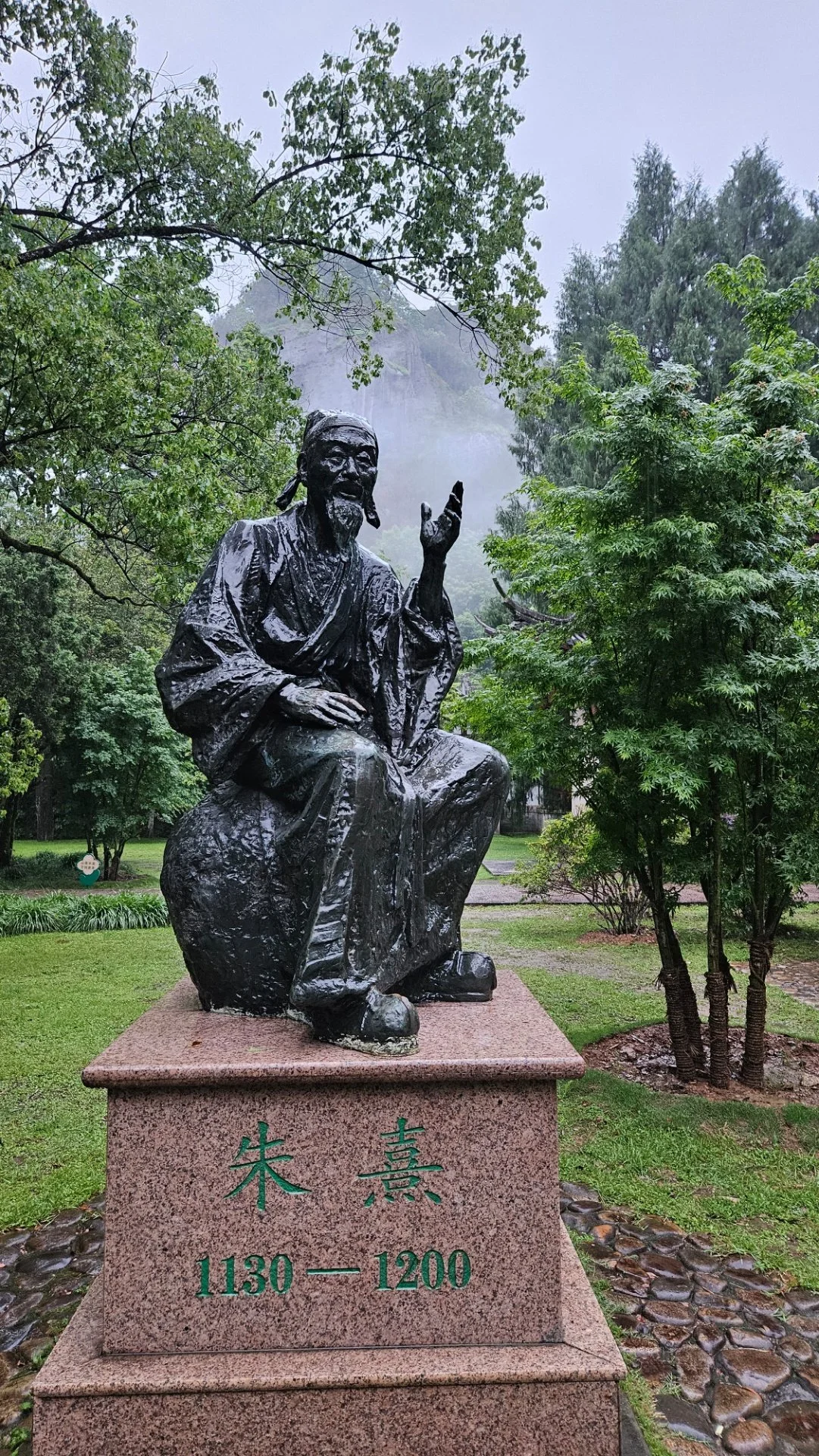 유일하게 공자의 친 제자가 아님에도 공묘(孔廟)에 향사되고 대성전 12 철자(十二哲者)로 자리한 주희는 1183년 이곳 구곡계의 제5곡에 무이정사(武夷精舍)를 짓고 그 이듬해에 '무이구곡가'로 알려진 '구곡도가(九曲棹歌)'를 지었다고 한다.