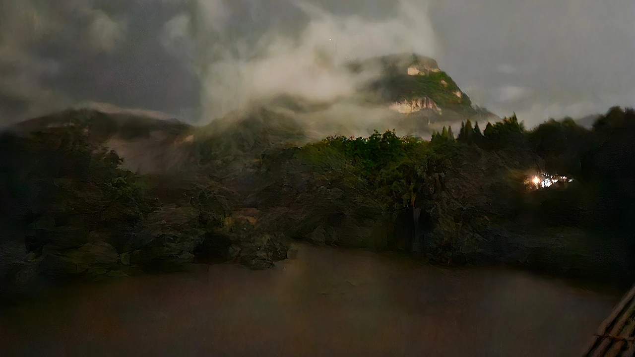 우이궁은 구곡계가 우이산 국가공원과 우이산시를 가르며 남북으로 흐르는 총양계(崇阳溪)로 안겨드는 곳 언저리에 자리한다. 새벽 네 시경 빗속, 구곡계 위로 놓인 다리를 건너 일곡(一曲) 쪽으로 발길을 다잡는다. 구곡계 물길은 어둠에 가려 보이지 않지만 귓전을 때리는 요란한 소리가 비에 불어난 거센 물살이 앞다투어 총양계로 내려가는 모습이 눈에 보이는 듯 선하다.