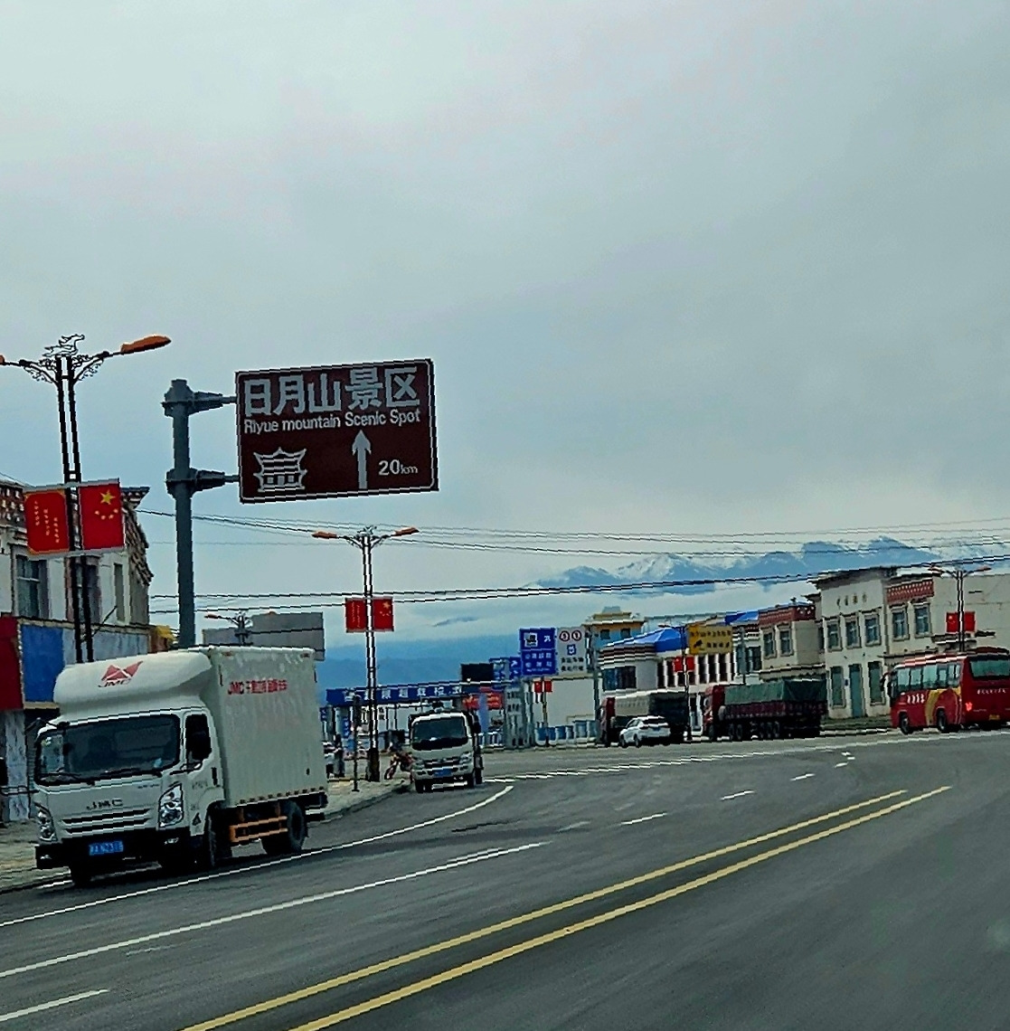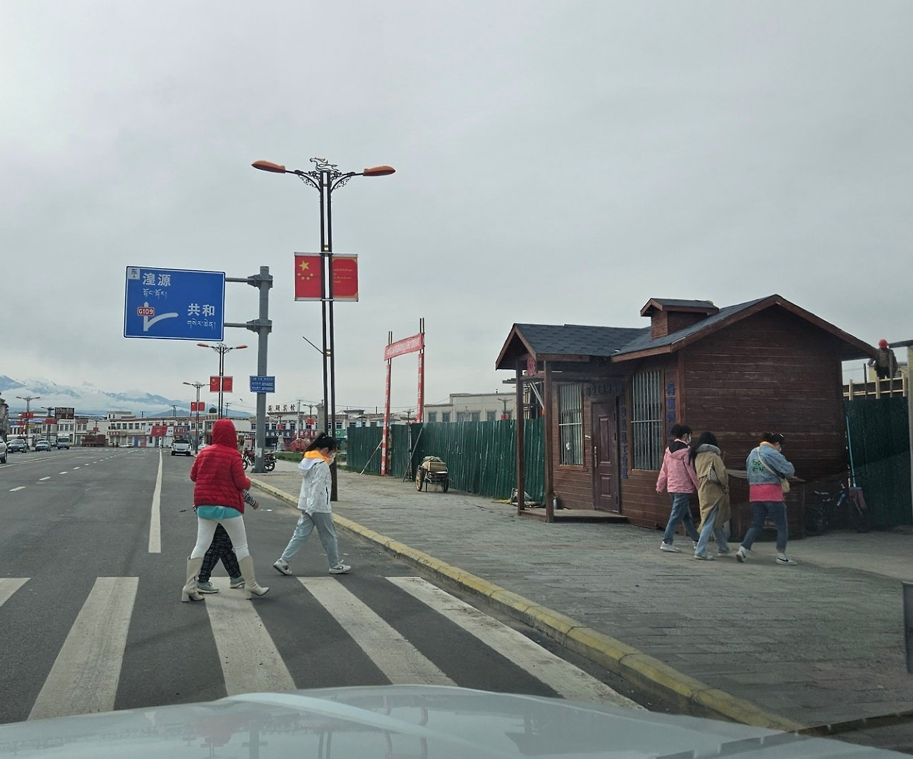 알랑젠 풍경구를 뒤로하고 어제 왔던 길을 되짚어가며 일월산과 시닝을 둘러보는 본격적인 이튿날 일정에 올랐다. 일월산을 향해 도창하진(倒淌河镇) 쪽으로 액셀을 밟고 가는 길 길가를 걷던 장족 복장의 키 작은 여성 둘이서 차량이 지날 때마다 차를 태워달라고 손짓을 보낸다.