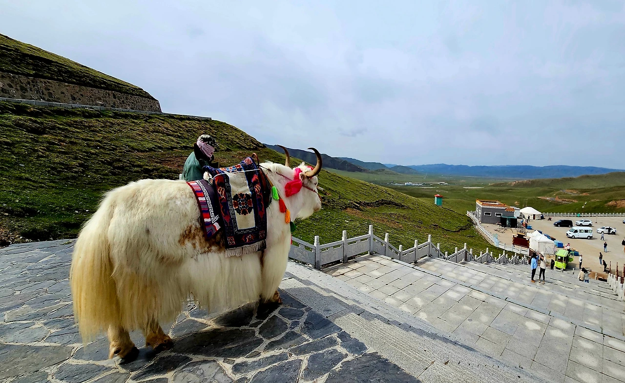일정 바로 아래 위치한 '일월산(日月山)' 표지석 부근에서 네댓 분 나이 든 남녀 현지인이 여행자들이 특별한 추억을 남길 수 있도록 야크, 낙타, 어린 양, 전통 양털 복장 등을 빌려 주고 있다. 낙타와 처음 보는 야크(마오니우; 牦牛)를 눈앞에서 보고 등 떠밀려 야크와 낙타의 등에 올라본 것은 별로 내키지는 않았지만 이곳이 아니면 체험할 수 없는 특별한 경험임에는 틀림없다.