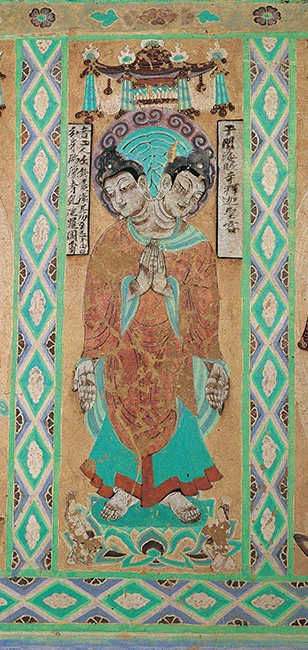 당나라 중기에 조성되었다는 237 굴도 마찬가지로 서벽 감실 윗부분의 37폭 서상도(瑞像图)가 있다는 것도 나중에 웹 검색에서 알게 되었다. 그 가운데 유일하게 몸체 하나에 머리 둘과 팔 넷의 '쌍두서상(双头瑞像)'라 명명된 석가여래 벽화도 있다고 하지만 버스 떠난 뒤에 손 흔드는 격이니 아쉬울 뿐이다.