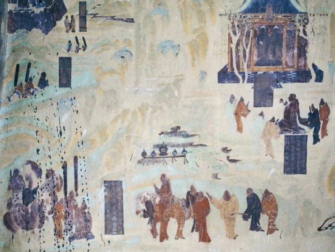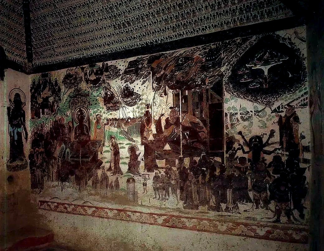 335 석굴은 초당 시기 조성되었는데 감실과 벽면에 법화경변, 아미타경변, 유마경변 등의 벽화가 보존되어 있다.