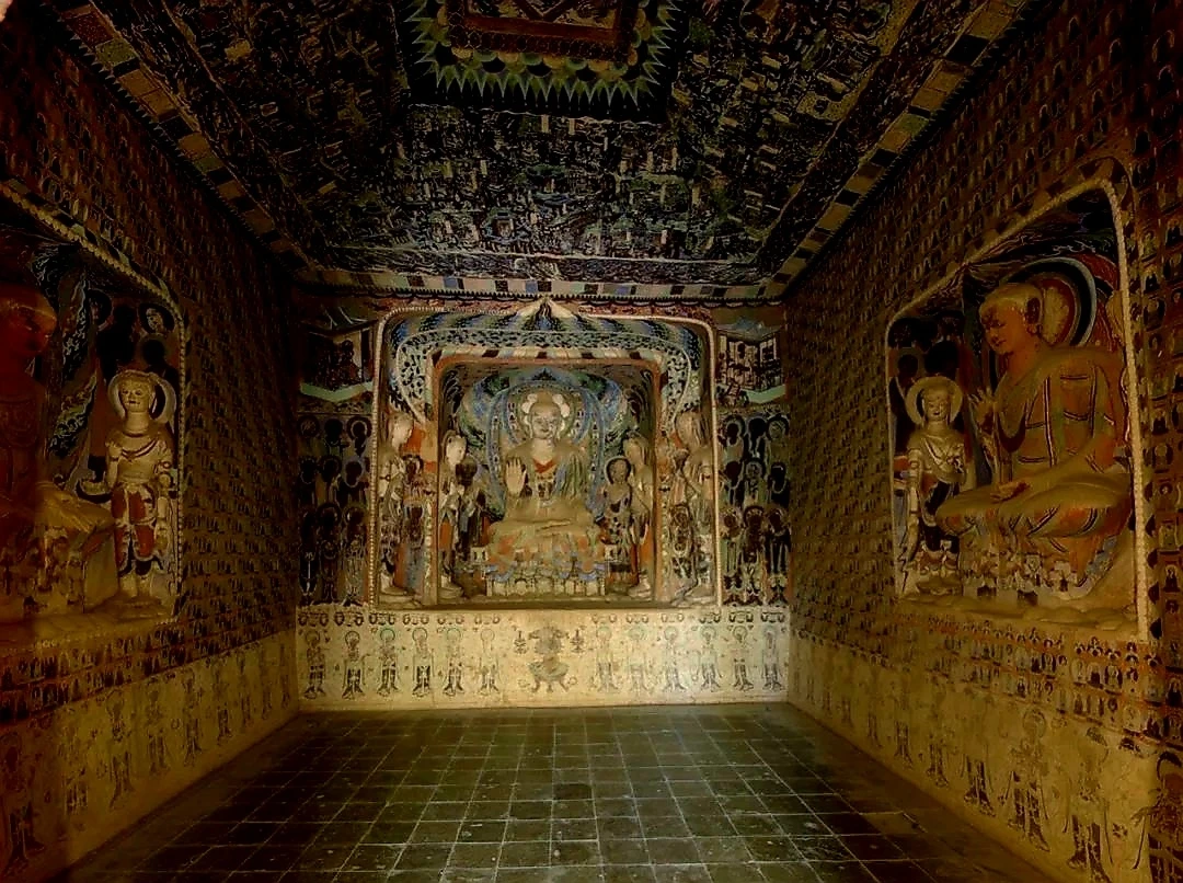 그 많은 석굴 가운데 대표적인 몇몇 석굴에 대한 소개가 이어진다. 285 굴은 서위(西魏, 535-557년) 때 조성된 석굴로 칠불설법도, 중국 고대 신화의 창조신 여와(女娲), 비천상 등 감실 가득 채색 벽화로 채워져 있다.