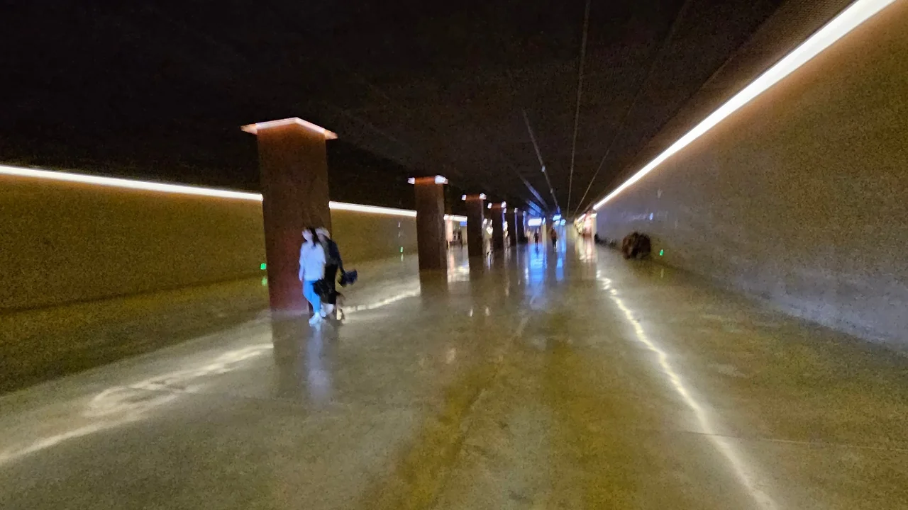 이제는 셔틀버스를 타고 허란산을 배경으로 드넓은 평원에 띄엄띄엄 자리한 서하왕릉을 탐방할 차례다. 박물관 밖 회랑은 그늘이 져서 뜨거운 태양을 피하기 좋은 통로다. 곧이어 셔틀버스 승강장까지의 지하로 놓인 이동 통로로 들어서자 냉기가 온몸으로 스미며 열기로 뜨거워진 몸을 순식간에 식혀준다. 이곳의 환경과 특성을 꼼꼼하게 관찰하여 이용객들의 편의를 도모하려는 건축가의 센스와 세심한 배려가 돋보이는 건축물이라는 생각이 든다.