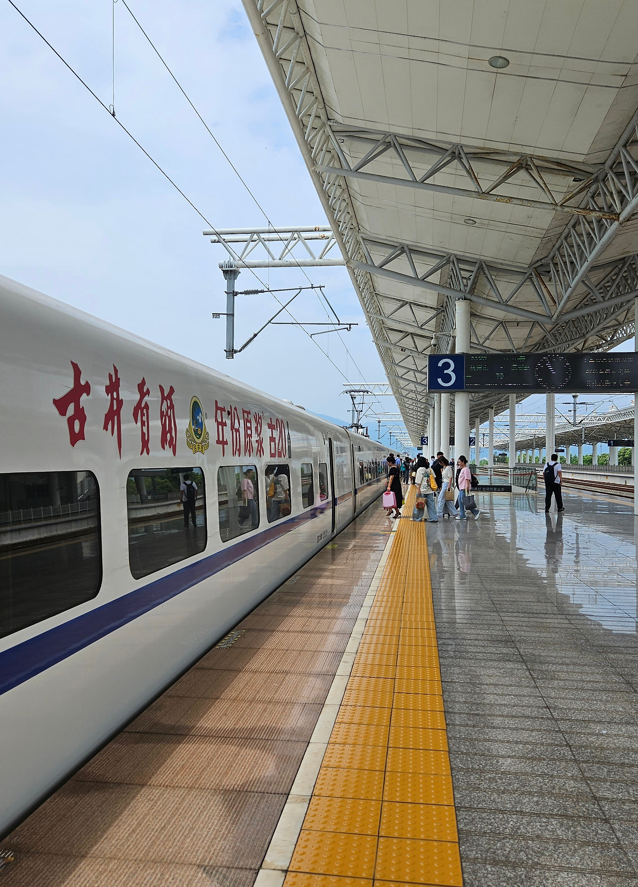 저장성의 성도인 항저우로 들어서자 멀찍이 산군이 눈에 들어오기 시작한다. 항저우 동역과 남역을 거치면서 헐렁하던 열차 객실은 빈 좌석이 거의 없이 만석으로 가득 찼다. 샤오싱(绍兴)과 닝보(宁波)를 지나고 닝하이(宁海), 린하이(临海) 등을 거쳐서 타이저우(台州) 북역으로 들어서기까지 열차 차창 밖으로 높고 낮은 산군들이 연이어 스쳐 지난다.