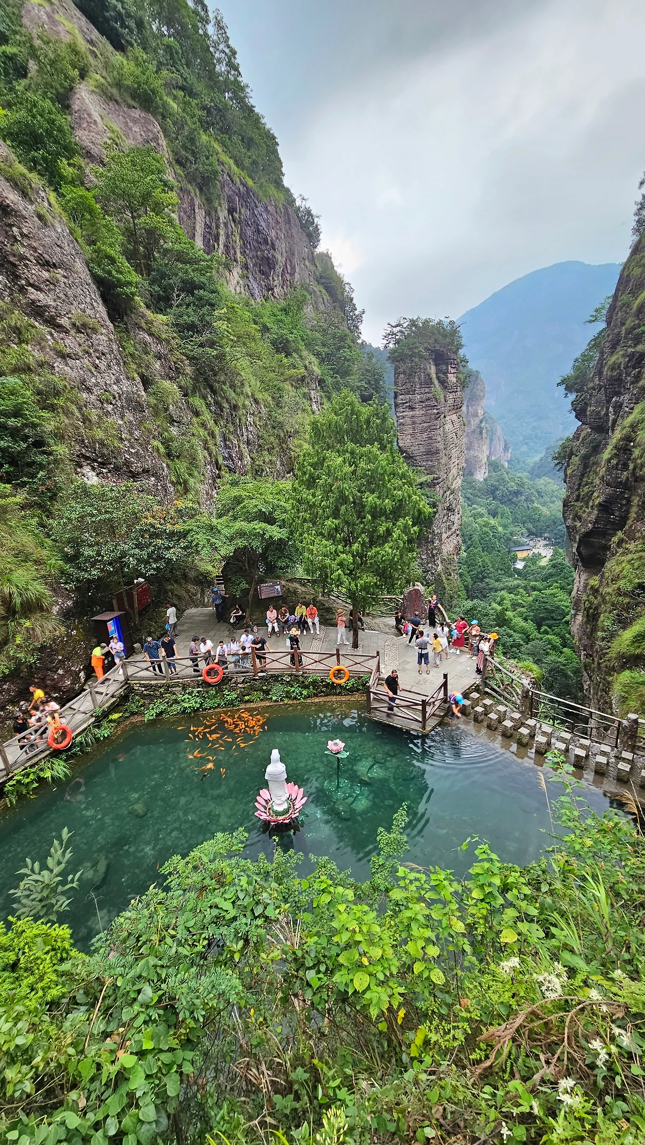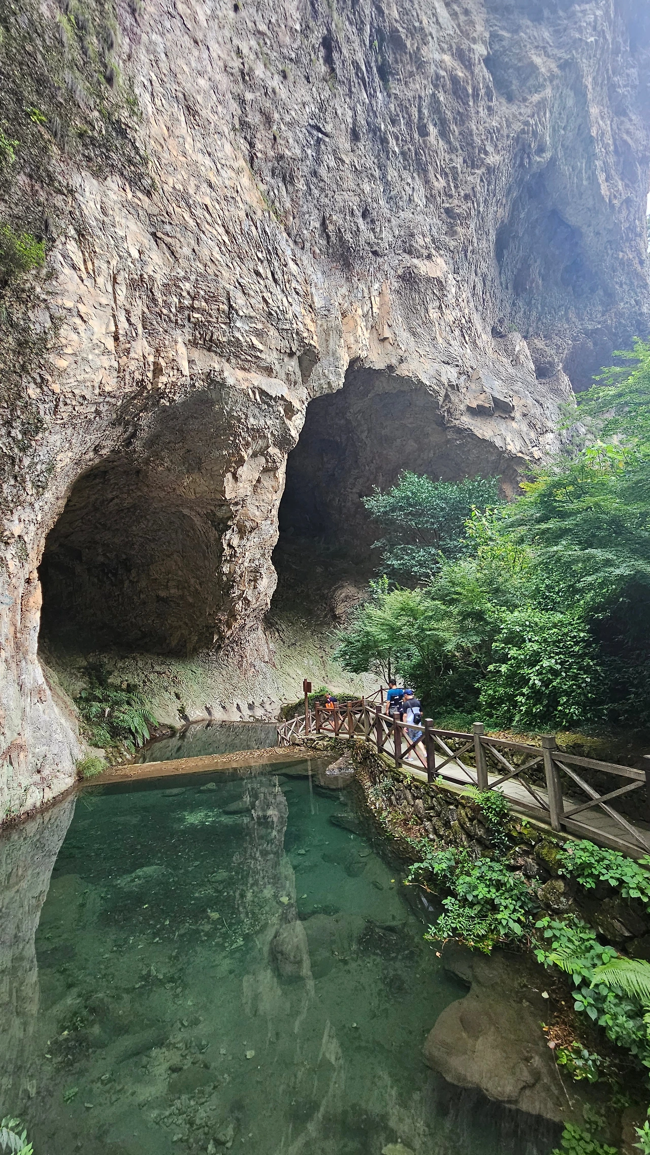 잔도 끝에는 폭포수의 수원이 되는 용구호(龙口湖; 롱커우후)와 와룡담(卧龙潭; 워롱탄)이 초록빛 맑은 물을 머금은 채 관람객을 맞이한다.