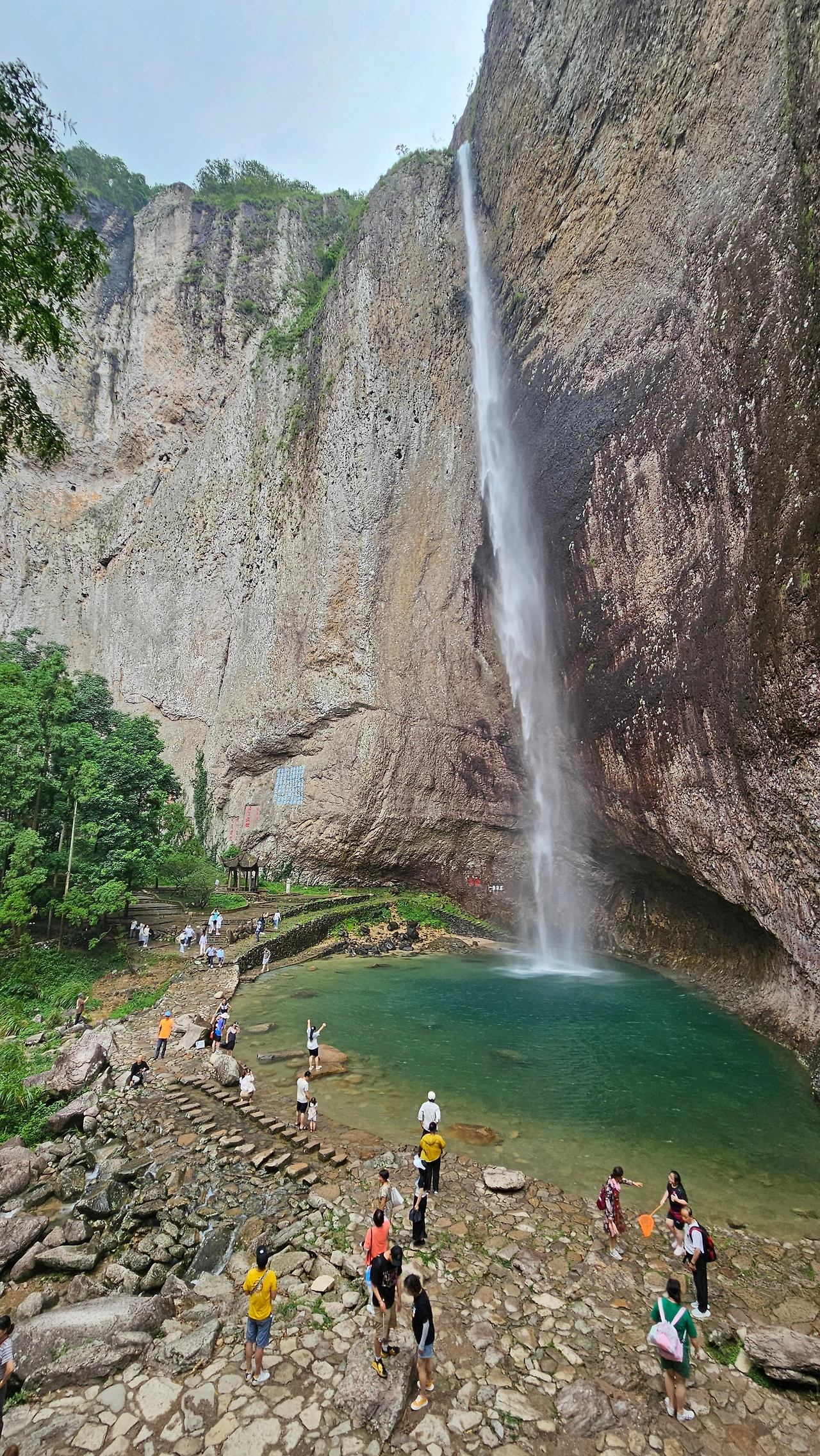 왼편 기슭의 관폭정(观瀑亭)에 오르면 폭포와 그 아래 물웅덩이 전체를 한눈에 들어온다. 폭포 앞 징검다리를 건널 때 물보라와 바람이 얼굴을 때린다. 상하이에는 폭우가 쏟아졌다는 얘기가 들려오는데, 이곳은 일기 예보와는 달리 비도 오지 않고 따가운 햇볕도 없는 날씨다. 이마에서는 땀이 비 오듯 뚝뚝 떨어지지만 절경을 감상하는 흥취는 남다르다.