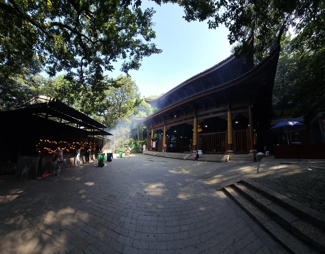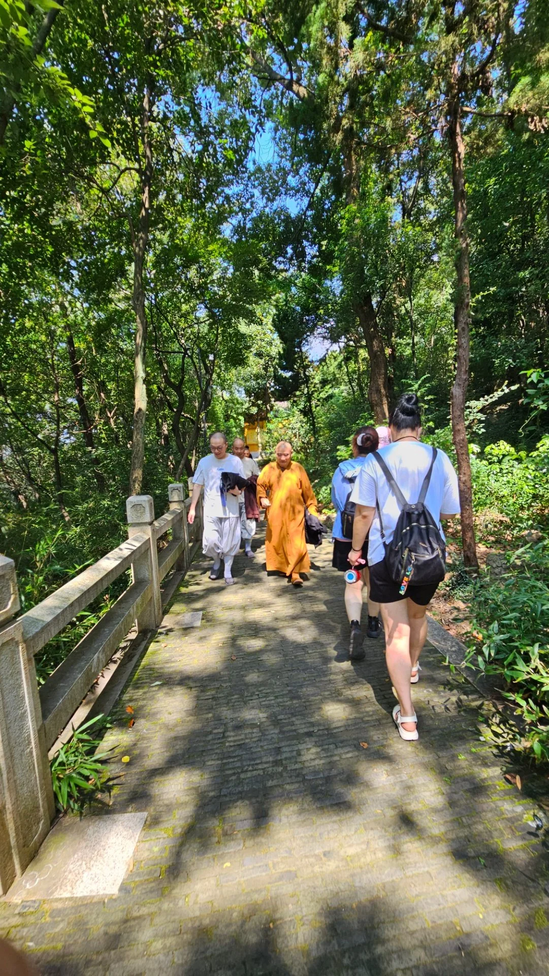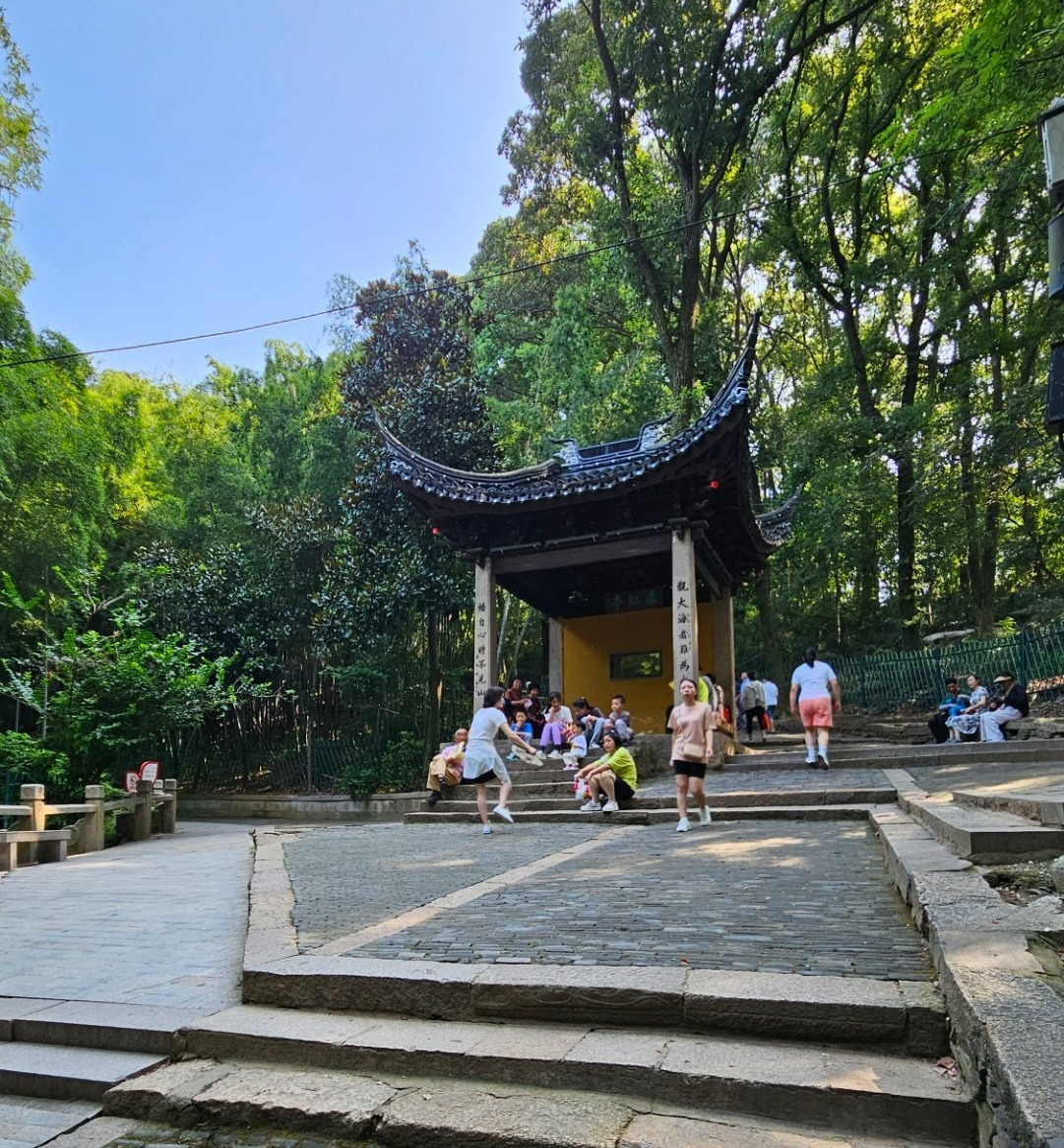 인광법사가 이름 붙였다는 '계려정(继庐亭)'을 통과하여 산정으로 향하는 계단길은 오르고 내리는 사람들이 적지 않다. 계단길 왼편은 어른 발목 굵기의 대나무가 빽빽이 숲을 이루었고 오른편엔 활엽수림이 무성하여 대조를 이룬다. 누군가 가마를 타고 이 계단길을 올랐는지 2인 1조 가마꾼 두어 무리가 빈 가마를 어깨에 걸치고 내려가고 있다.