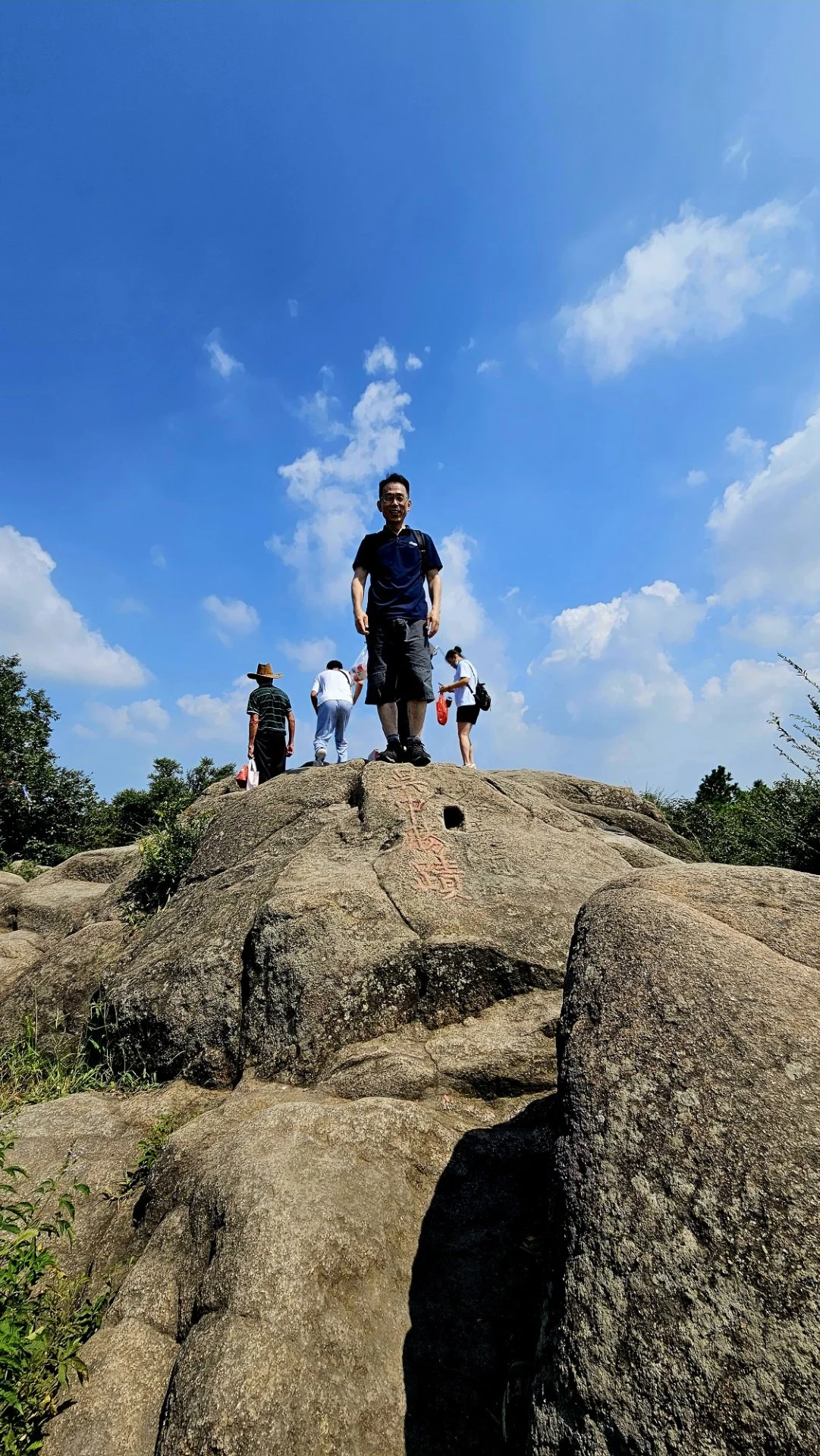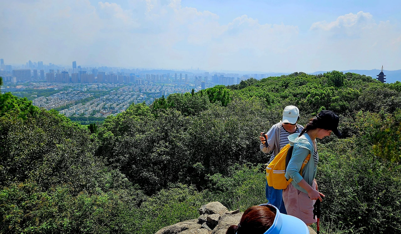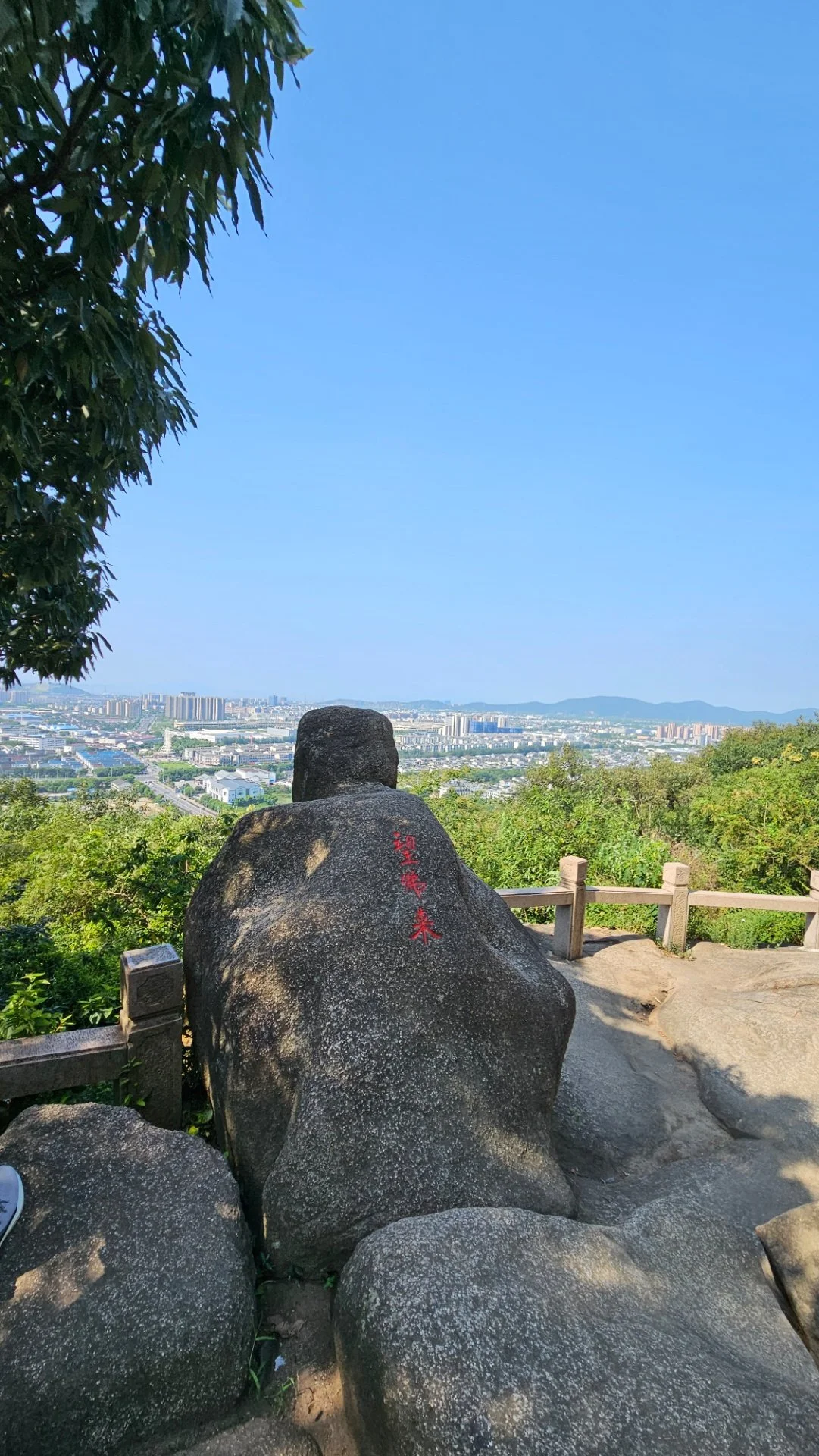 오전 열 시경 고도계가 해발 180여 미터라고 알리는 '오중승적(吴中勝積)'이라는 각자가 새겨져 있는 암봉 위 영암산 정상에 올라섰다. 많은 사람들이 그 위에서 사방으로 트인 경관을 조망하고 있다. 하늘은 드높고 푸른데 햇살은 따갑기 그지없다. 서시가 고향을 그리워하며 거문고를 타던 곳이라는 금대(琴台)에 대해서는 아무런 표지도 없어 어디인지 가늠할 수 없다.