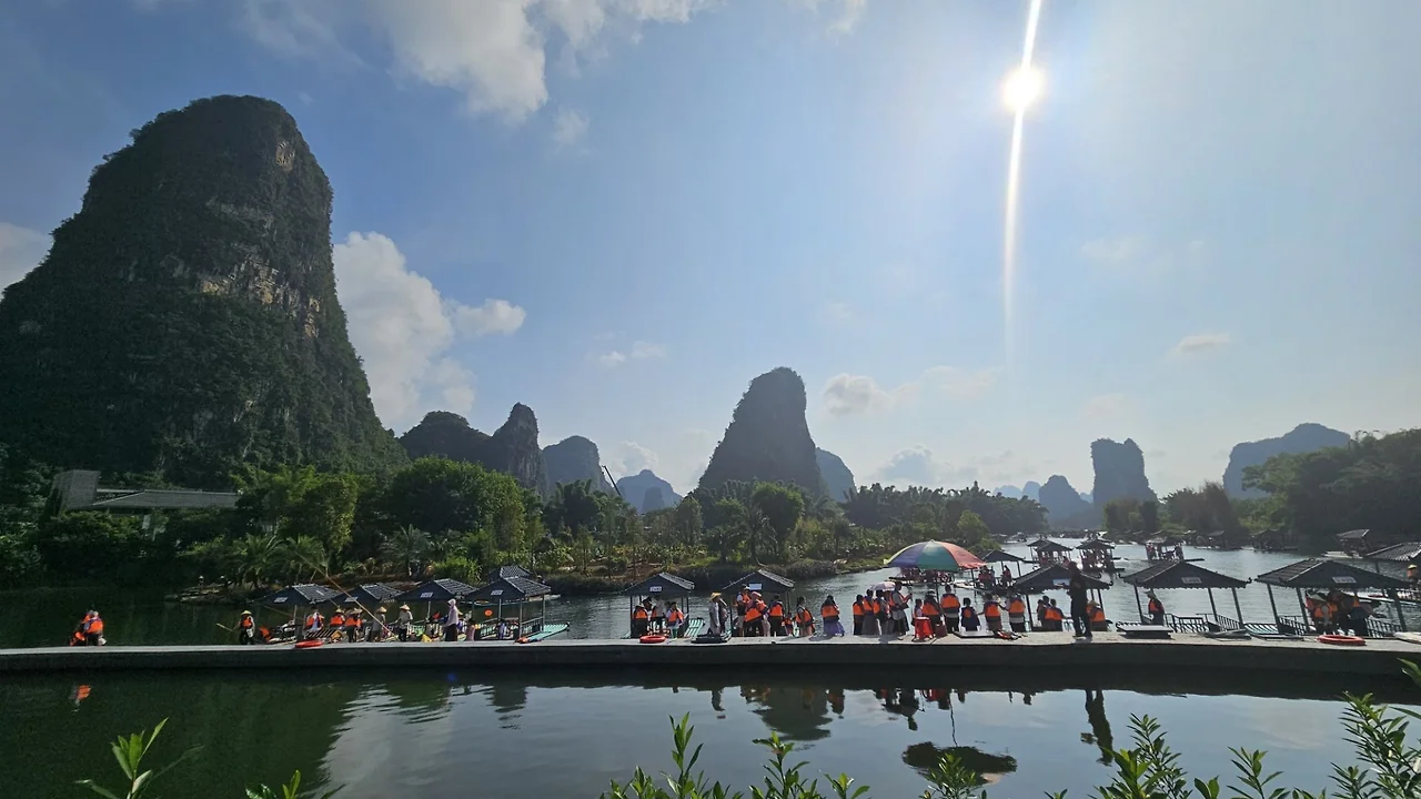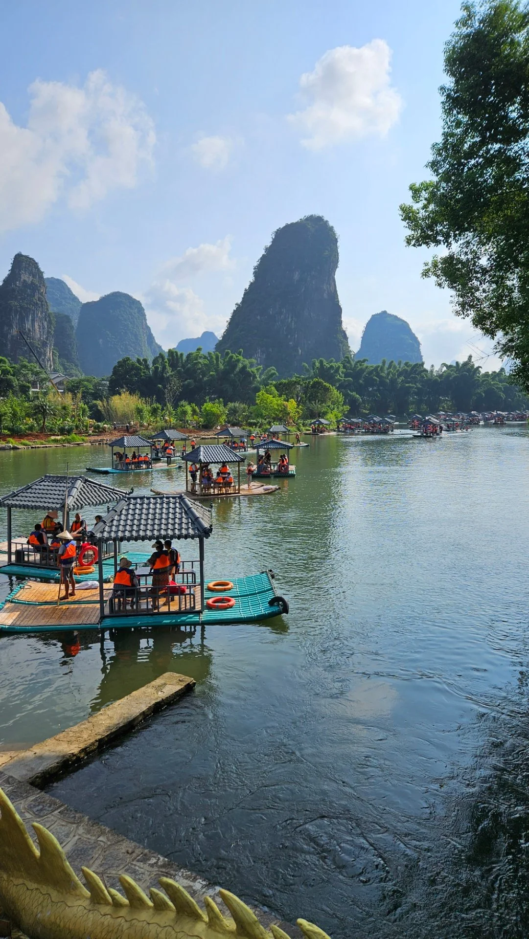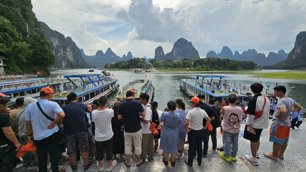 상산띠런(象山滴人) 유람선 선착장에는 여러 코스의 야간투어 유람선이 출발한다. 그중 10:55 출발하는 40여 석의 작은 유람선에 리강과 그 지류에 둘러싸인 '양강사호(两江四湖; 량쟝쓰후)'를 한 바퀴 둘러보기로 했다.